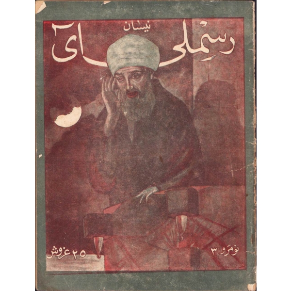Ön kapak görsel yazısı: "Geveze: Üstad, sizin iyi kılınç kullandığınızı biliyorum ama böyle imal etdiğinizi bilmiyordum maşallah hiç boş durmuyorsunuz! Usta: İşleyen demir ışıldıar!"