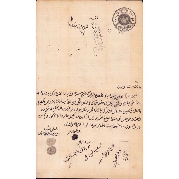 "1321 senesinde inşa ve tamir olunacak yollar ve geçitler için mükellef nüfus tarafından dörder günlük mükellefiyetleri karşılığında miri fiyatına verilecek 20 kuruşun pusulasıdır"