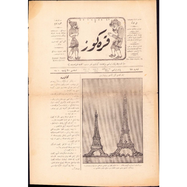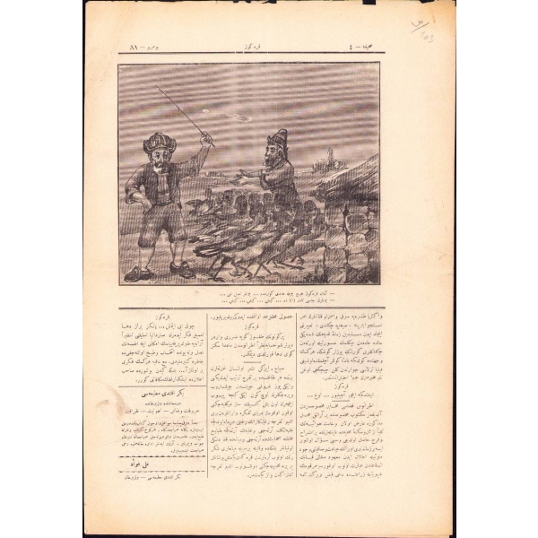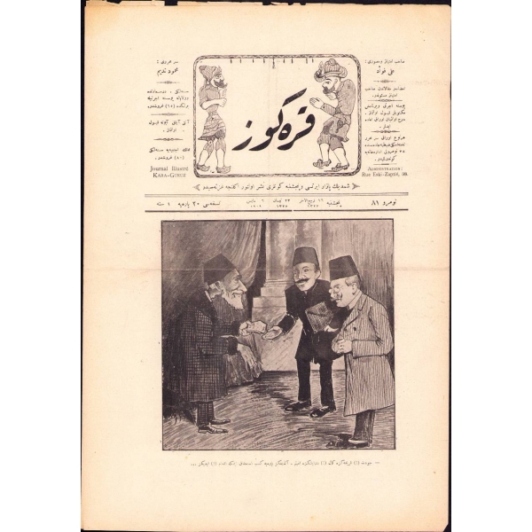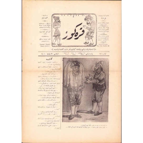 Ön kapak görsel yazısı: "-Canım birader… Bu saat camını başına niçin geçirdin?.. -Çamur bitdi, toz çıkdı… Bazı sokaklarımız güzellikle falan gezilir gibi değil ki…"