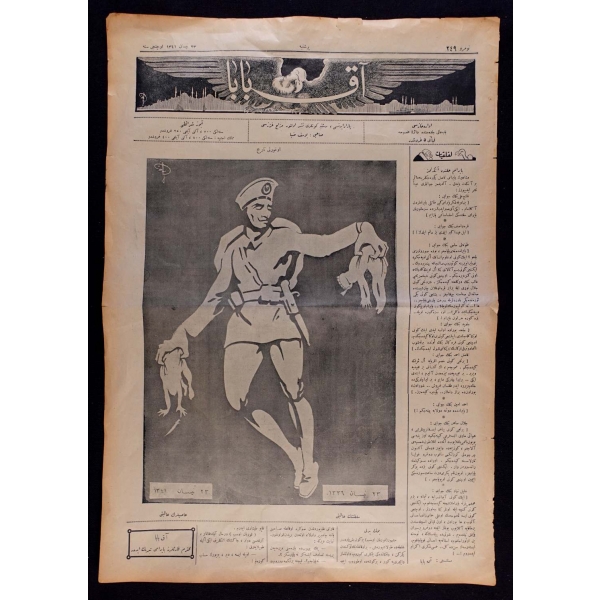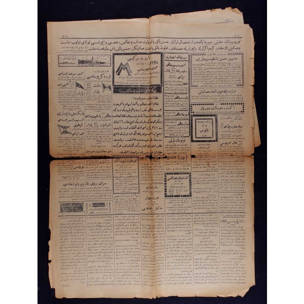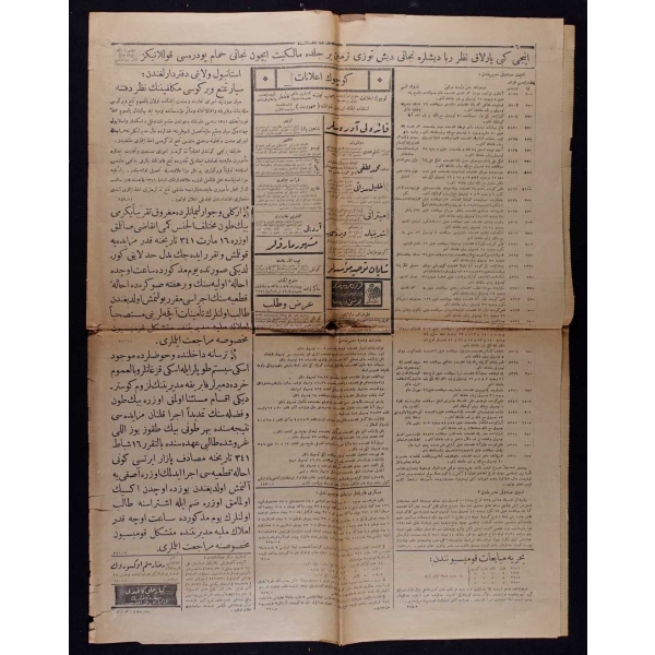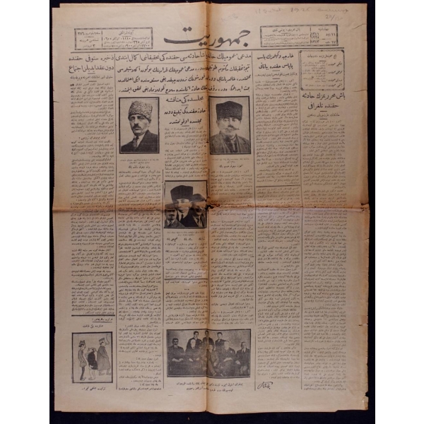Ön yüzde, "Müddei-i umumilik Halid Paşa hadisesi hakkındaki tahkikatını ikmal etdi", "Zahire stoku hakkında dün akdedilen ictima", "Hariciye Vekilimizin Papas hakkında beyanatı" vd. başlıklı metinler yer almaktadır.