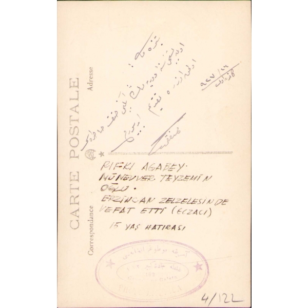 Fotoğraflar; Foto Rasim, N. Andriomenos&Fils, Foto Venüs, Foto Lale, Ali Sakıb Türk Fotoğrafhanesi, Sivas Terakki Fotoğrafhanesi damgalı olup üçü ithaflıdır.