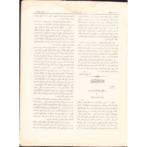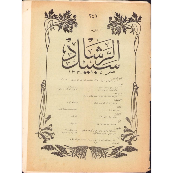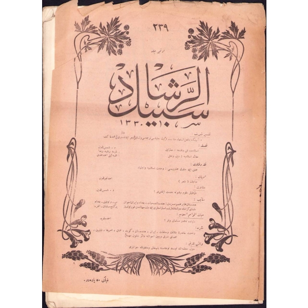 Mehmed Akif´in desteği ve başyazarlığı ile Eşref Edip tarafından yayımlanan dergi, İslam dünyasının uyanması ve yükselmesi için çalışmayı en kutsal görev bildiğini belirtmiş ve meşrutiyet yanlısı bir tavır benimsemiştir. Bu sayıda Tahir el-Mevlevi, Aksekili Ahmed Hamdi, MEhmed Akif gibi isimlerin yazısı yer almıştır.