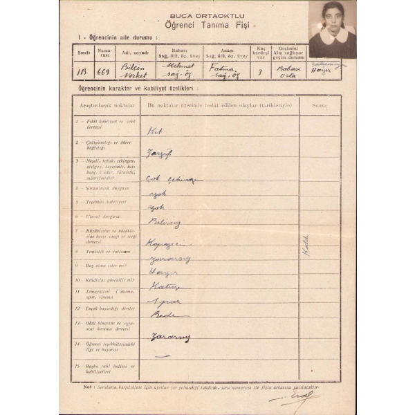 "Çalışkan yavrum, 1943-1944 ders yılında okulenu "Pekiyi" derece ile bitiriyorsun… Sen kahraman ve çalışkan büyük Türk Milletinin çalışkan bir evlâdısın…"