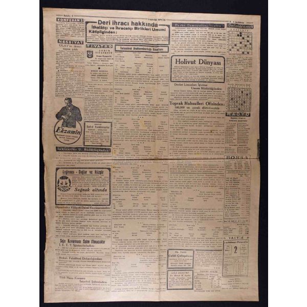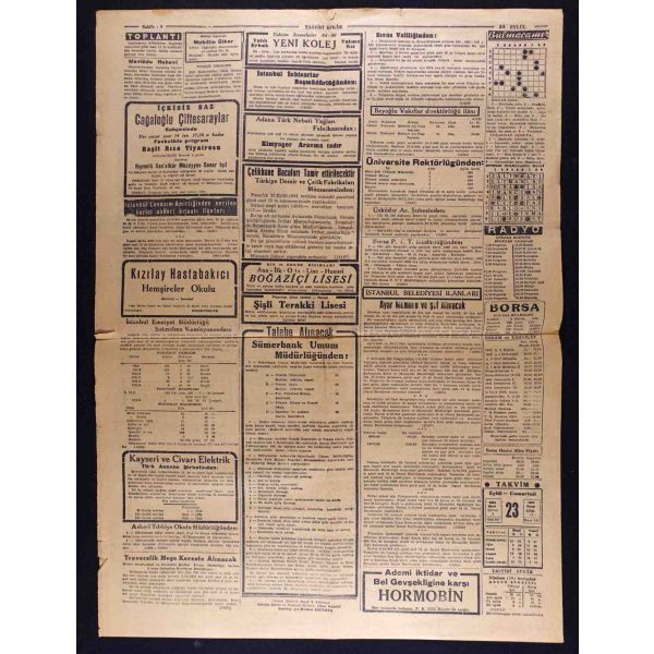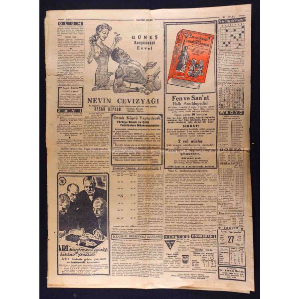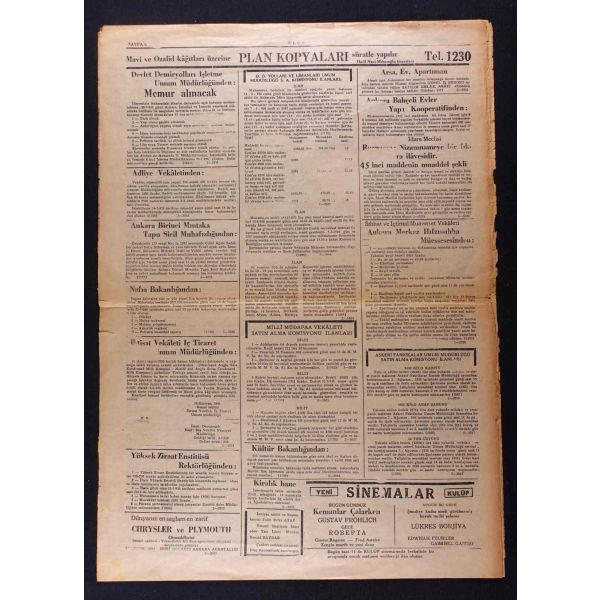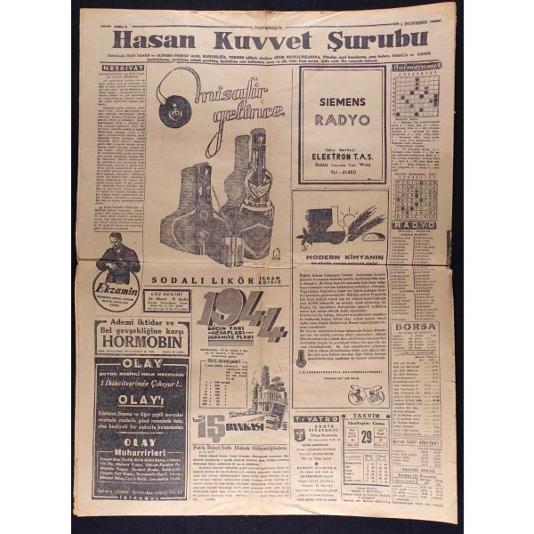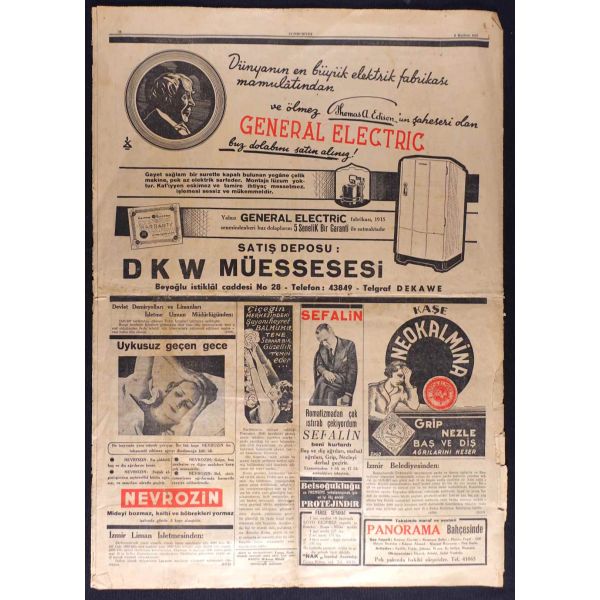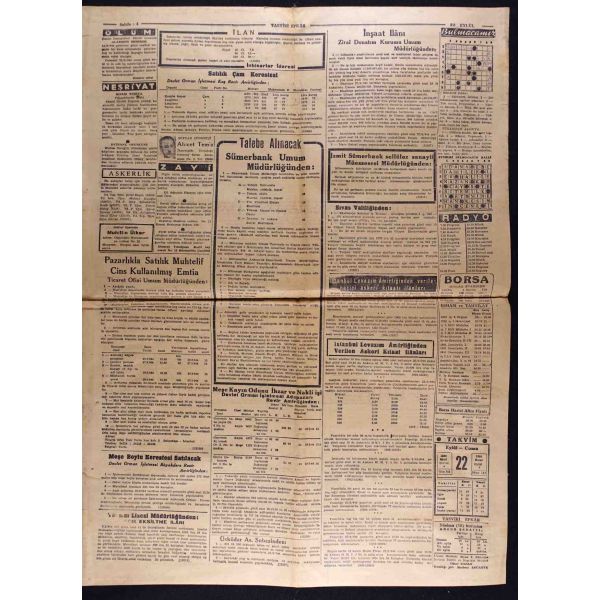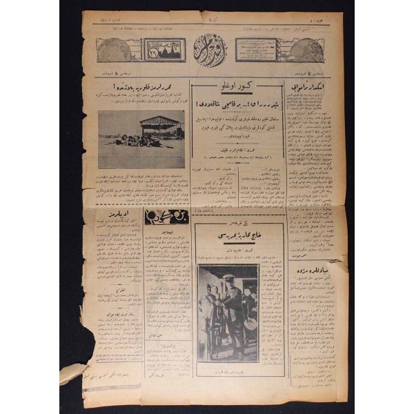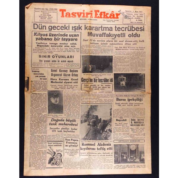 "Habeşistan, kısmî seferberlik ilân etti", "Hava tehlikesine karşı dün yapılan toplantı", "Hicaz Veliahdi Emir Süud, Ankara ziyaretinde bizimle Haremi Şerif vakıfları işini görüşecekmiş" vd. başlıklı yazıları içermektedir.