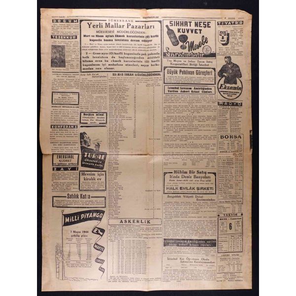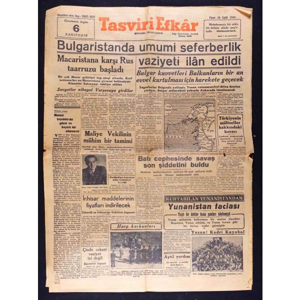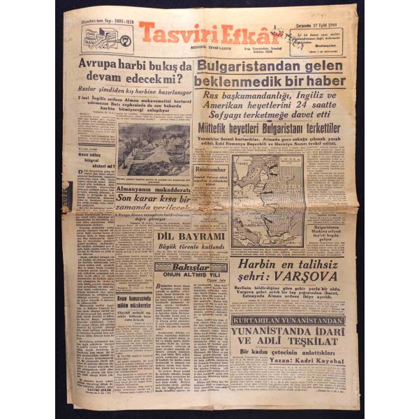 Mevcut sayılar, "4 müttefik devlet şefi Tahranda", "Hollanda büyük meydan muhaberesi", "Bulgaristanda Sovyet icraatı", "Avrupa harbi bu kış da devam edecek mi?", "Türkiyenin mülteciler hakkındaki kararı", "Almanya ve Japonyanın akibetleri ne olacak?", "Doğuda büyük tank muharebesi", "Millî Şef İsmet İnönü" vd. başlıklı yazıları içermektedir.