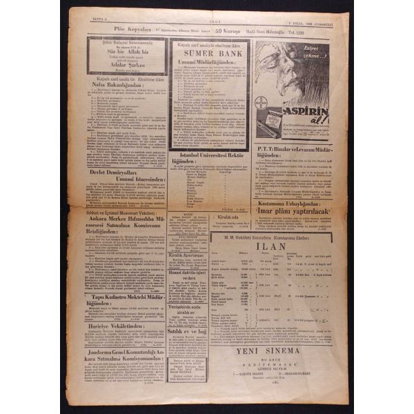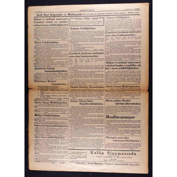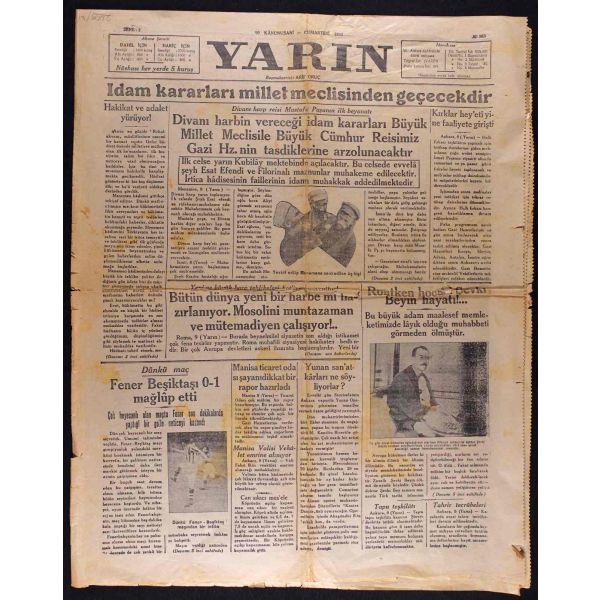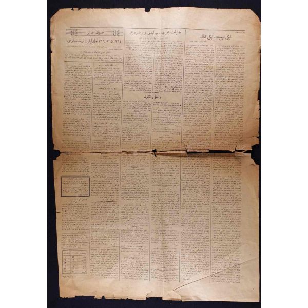"Divanı harp reisi Mustafa Paşanın ilk beyanatı", "Bütün dünya yeni bir harbe mi hazırlanıyor", "Kırklar hey´eti yine faaliyete girişti" vd. başlıklı yazıları içermektedir.