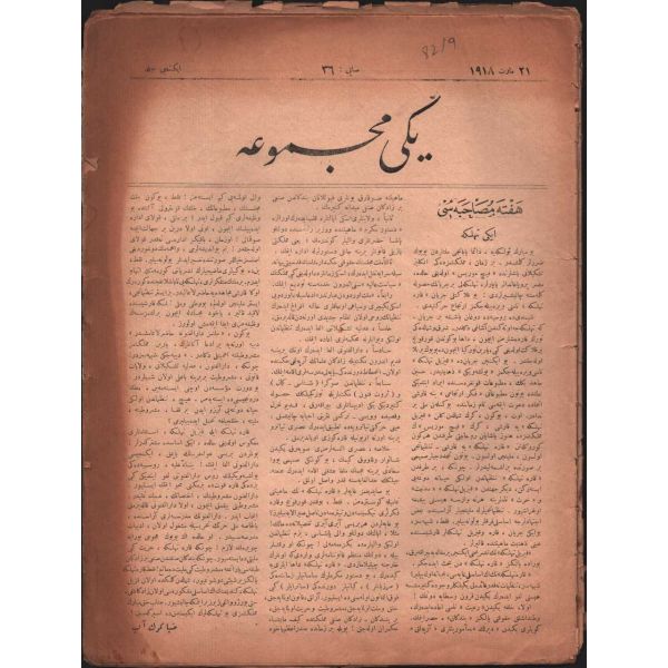 Lotta mevcut sayılar: 36, 38, 41, 44, 65, 66, 2-68. *Ziya Gökalp´in öncülüğünde İttihat ve Terakki Cemiyeti´nin maddi desteğiyle yayın hayatına başlayan dergi, Türkçülük ve milliyetçilik görüşüne bağlı kalarak döneminin entelektüellerini çatısı altında bir araya getirmiştir. Yazıların herkesin anlayabileceği bir dil ve üslupla kaleme alındığı derginin yazar kadrosunda Faruk Nafiz Çamlıbel, Mehmed Fuad Köprülü, Ömer Seyfeddin, İbrahim Alaeddin Gövsa vd. isimler yer almıştır.