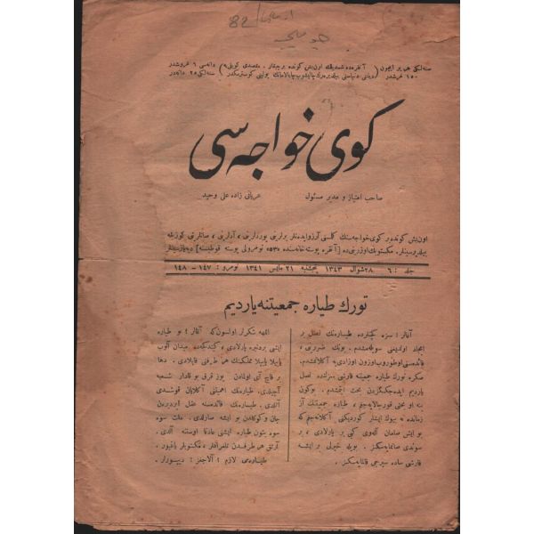 Mevcut sayılar, "Heyet-i Vekile son kararını verdi", "İstanbul´daki mülakatlar nasıl cereyan etti?", "Adliye ordusunda bir teftiş-i resmî", "Dünya faşistlerin aleyhinde", "Turşucu Cemal Efendi´nin muhakemesi meraklı safhada" vd. başlıklı yazıları içermektedir.
