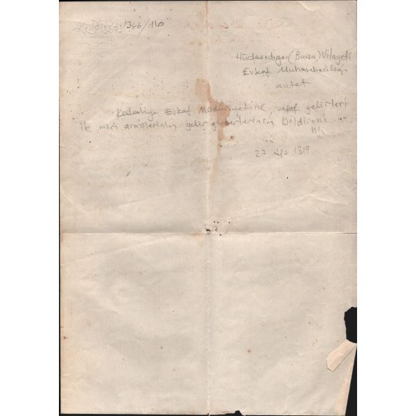 Beyoğlu´nda 1. Kolordu Kumandanı Cafer Tayyar Bey tarafından kiralanan evi 1335 tarihinde işgal eden İngilizlerin, evi işgal ve tahliye ettikleri esnada kiracı ve ev sahibi hesabına doğurdukları zararın tahsil edilmesi, edilmediği takdirde de iki tarafın birbirinden bir şey talep etmeye haklarının olmayacağına dair sözleşme.