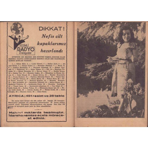 “Radyo meraklılarının, musikiseverlerin, alafranga ve alaturka aşıklarının, genç kızların ve genç kadınların salonlarını nefis bir mecmuâ ile süslemek isteyenlerin aylardan beri beklediği yegâne ve hakiki radyo mecmuası."