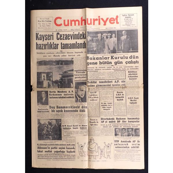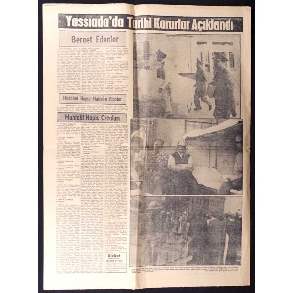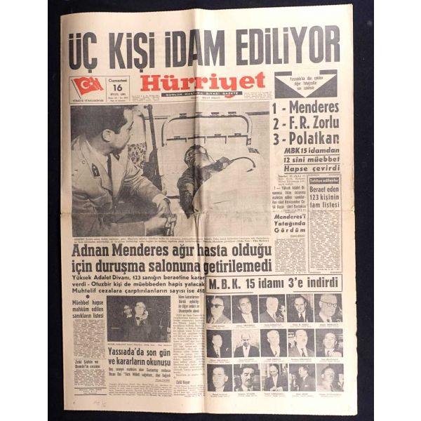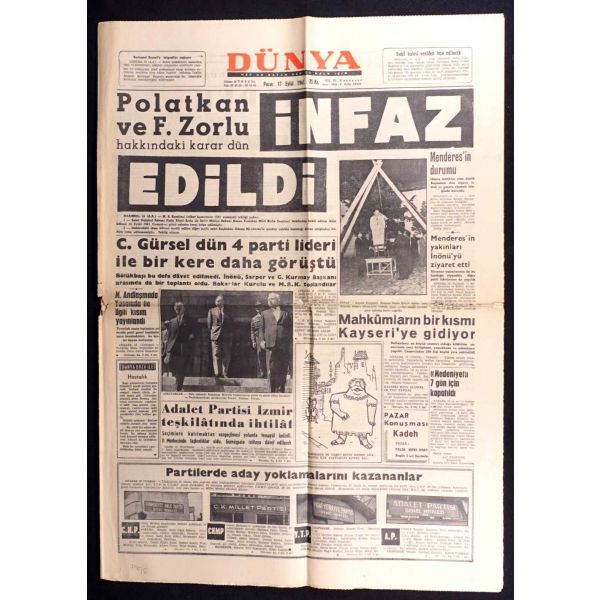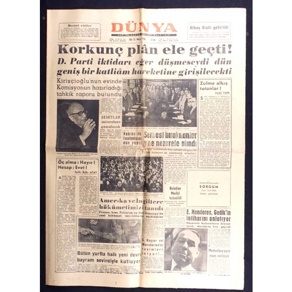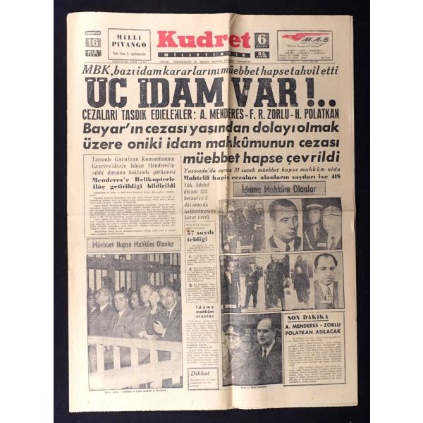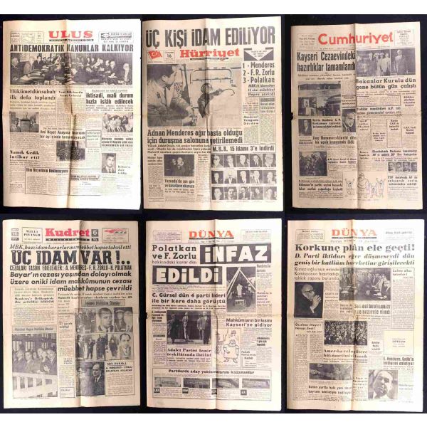 31 Mayıs 1960 tarihli DÜNYA gazetesi, 31 Mayıs 1960 tarihli ULUS gazetesi, 17 Eylül 1961 tarihli DÜNYA gazetesi, 16 Eylül 1961 tarihli HÜRRİYET gazetesi, 19 Eylül 1961 tarihli CUMHURİYET gazetesi, 16 Eylül 1961 tarihli KUDRET gazetesi
