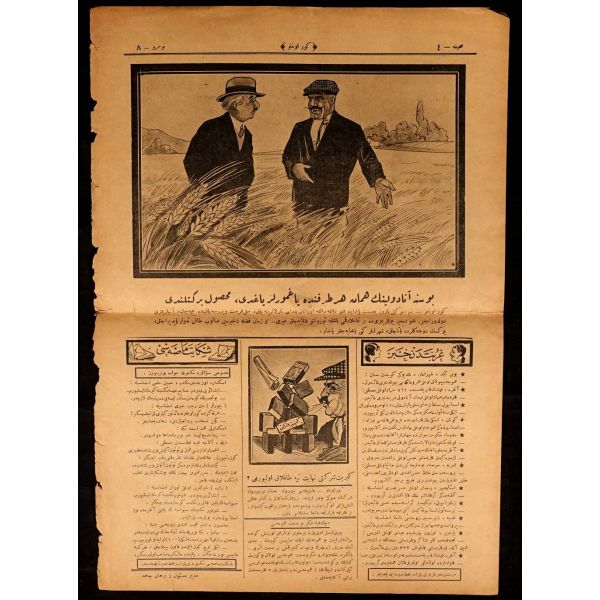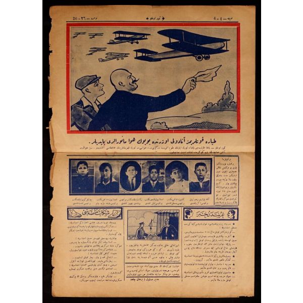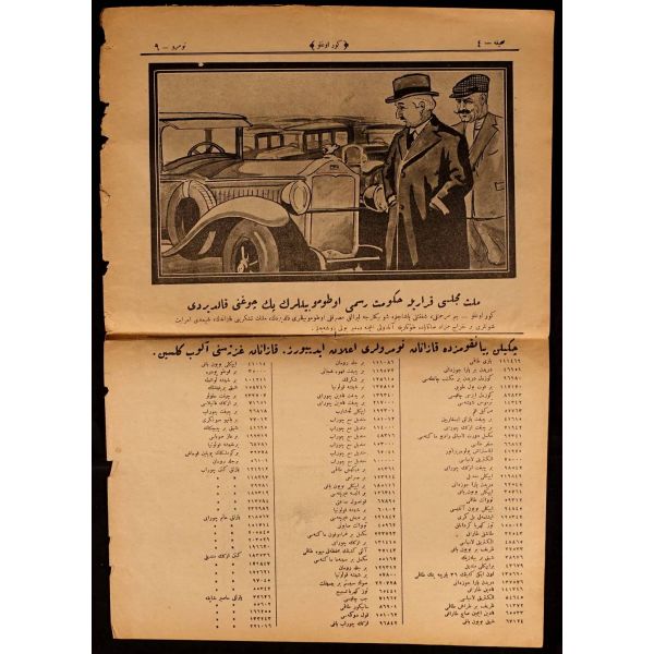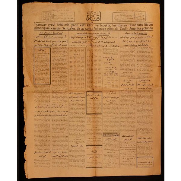 Teyyare piyangosunda kazanan numarlar, Tramvay grevi hakkında verilecek karar ve harf inkılabının uyandırdığı alaka ile ilgili haberlerin yer aldığı gazete