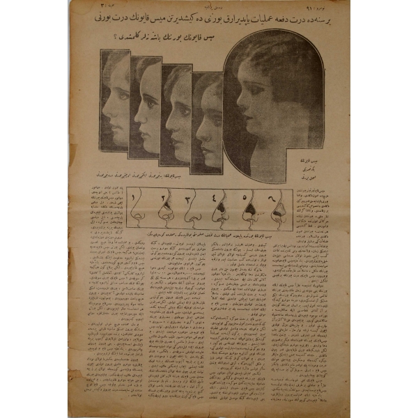 Dikkat çeken başlıklar: "Enver Paşa'nın Türkistan'da İmparatorluğu Tesis İçin Aldığı Tertibat Ve Oynadığı Oyunlar", "Rus Saraylarında Emsalsiz Aşk Macerası Yaşayan bir Türk Genci" , ön ve arka kapak bir kenarı haliyle, 12 sayfa, 28x44 cm
