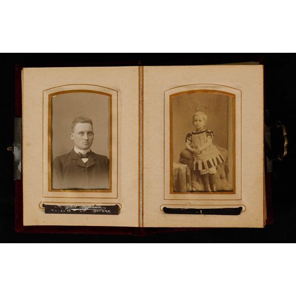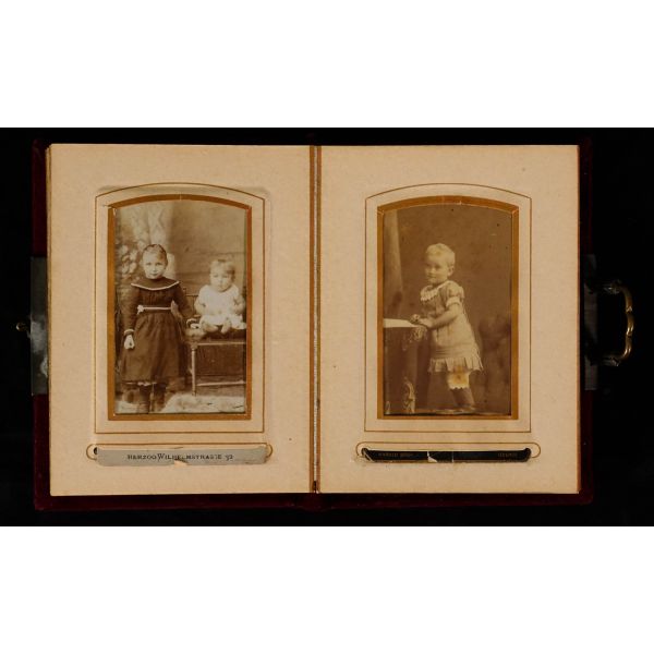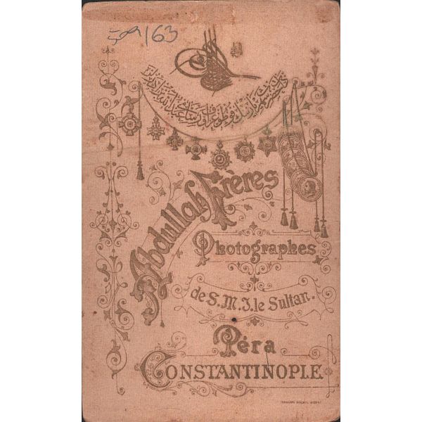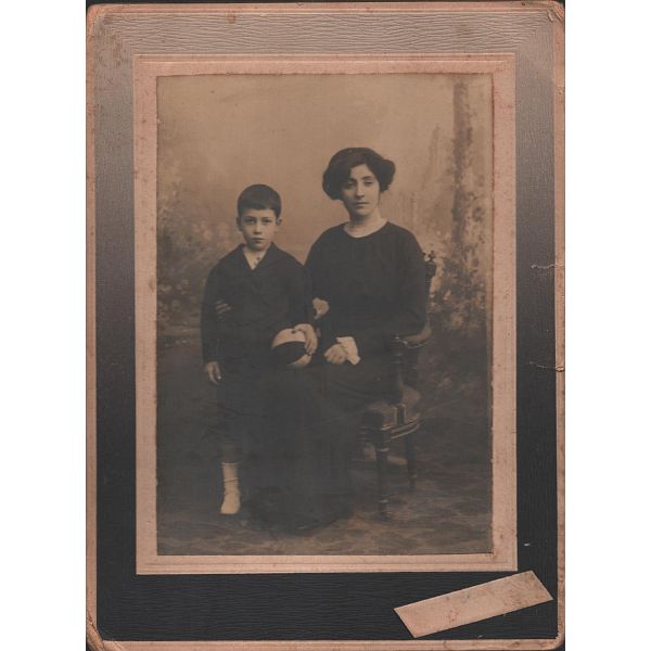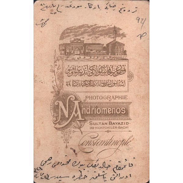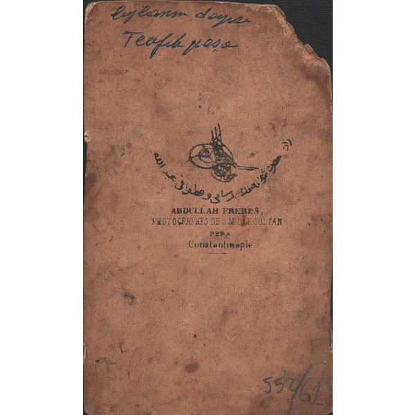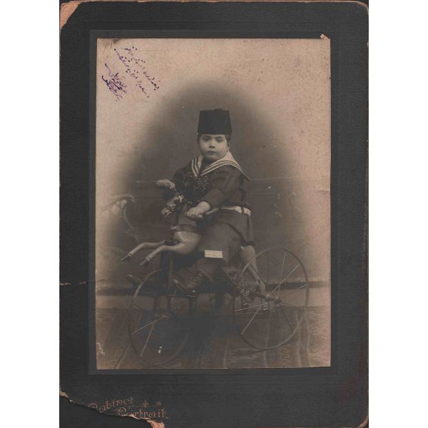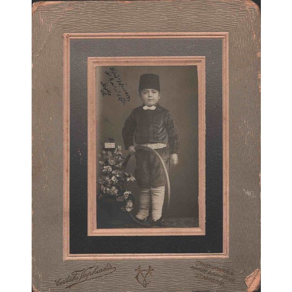 Fotoğrafın üzerinde "Bağdat´ta eniştem izzetli Esad Beyefendi´ye takdim" yazılıdır ve küçüğün pantolonuna iliştirilen kağıtta 16 Şubat 1319 ve 17 Şubat 1323 tarihleri yer almaktadır.