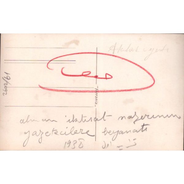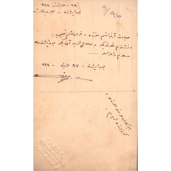 Arka yüzünde yer alan mektupta, "Kardeşim Naima´ya, eniştem Nusret Bey´e ve Selahaddin ağabeyime Budapeşte´den selam ve ihtiramlar 27 Haziran 1339" yazılıdır.