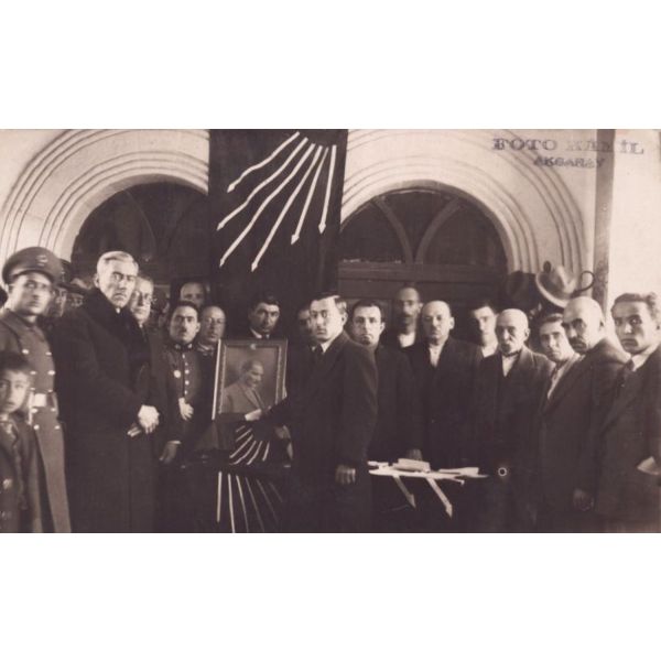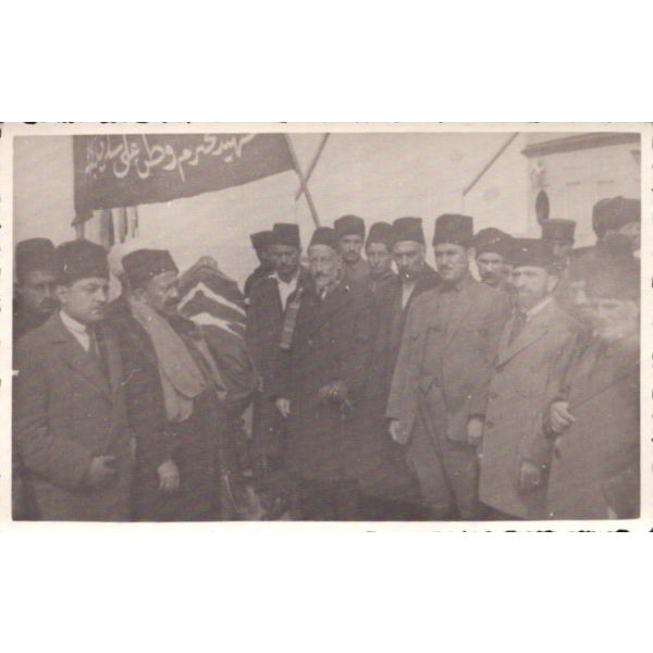 Fotoğrafta görülen pankart üzerinde "Şehid-i muhterem-i vatan Ali Şükrü Bey..." yazılıdır... Büyük Millet Meclisi´nde Mustafa Kemal´e sert muhalefetiyle tanınan Ali Şükrü Bey, Topal Osman tarafından öldürülmüş ve cesedi olaydan birkaç gün sonra Çankaya Köşkü bahçesinde bulunmuştur. Olayla ilgili olarak gözaltına alınmak istenen Topal Osman, adamlarıyla birlikte güvenlik güçlerine ateşle mukabele etmiş ve çıkan çatışmada öldürülmüştür.