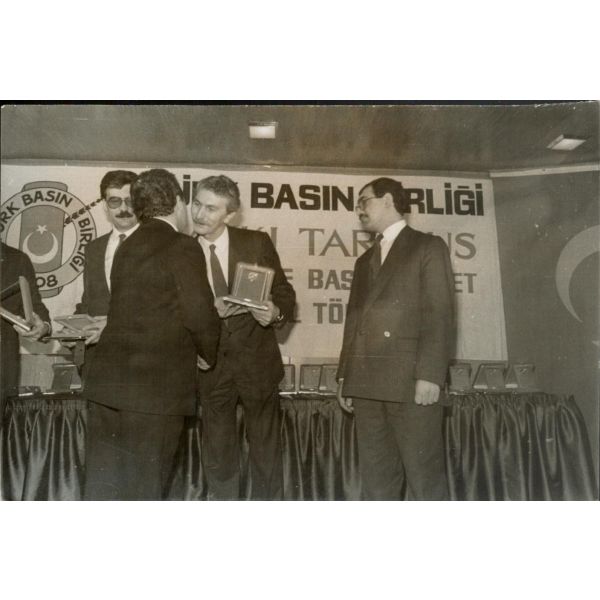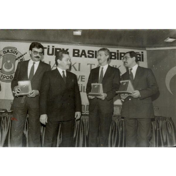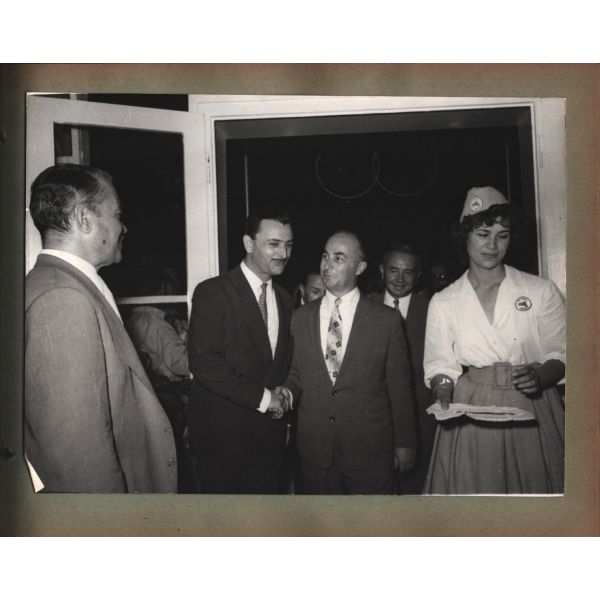 Fotoğraflarda Alman Eğitim uzmanı Marianne Hausler, yardımcısı George R. Dick, Milli Eğitim Bakanlığı Müsteşarı Abdullah Nişancı ve gazeteci Doğan Sümer görülmektedir.