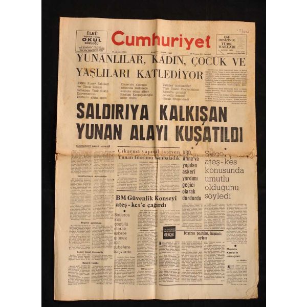 "C.H.P. Genel Sekreteri Dr. Kemal Satır Radyoda Konuştu: Yabancı Devletlere El Açmaktan Kurtulacağız" - "Rumlar Türkleri Bir Anda Yok Etmek İçin Hazırlık İçindedir"