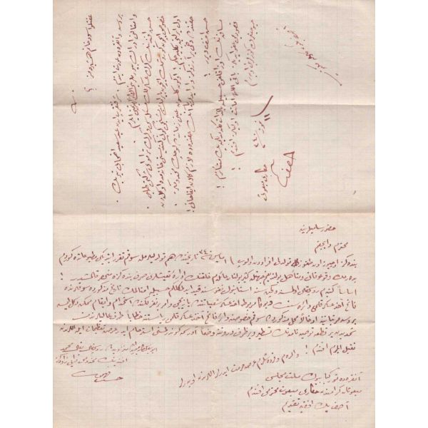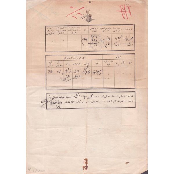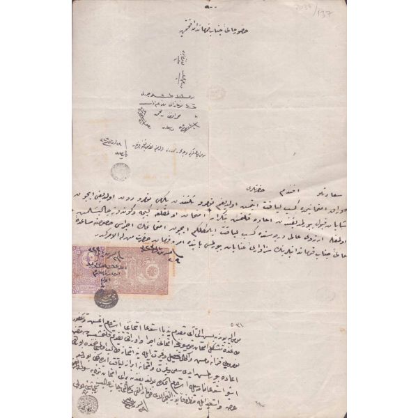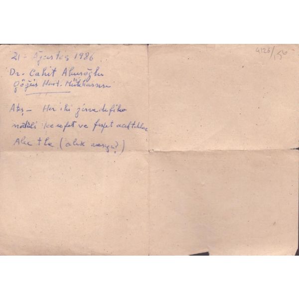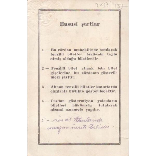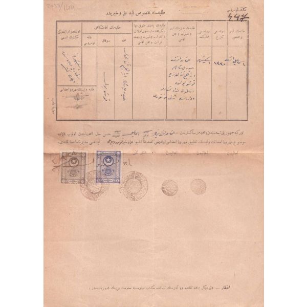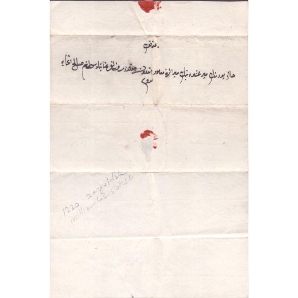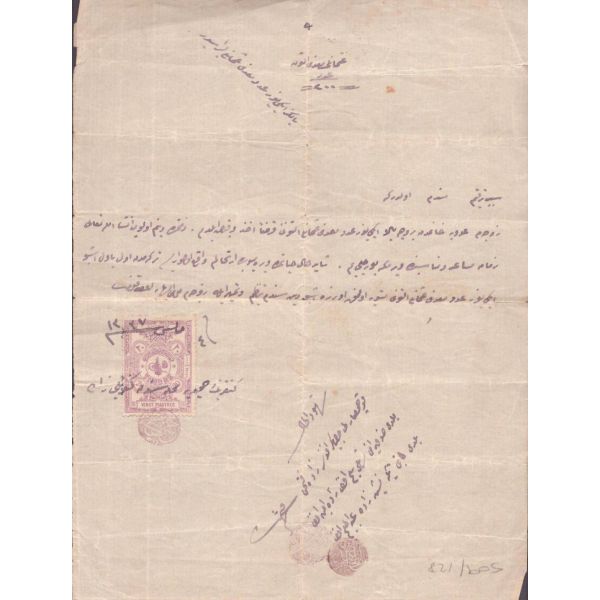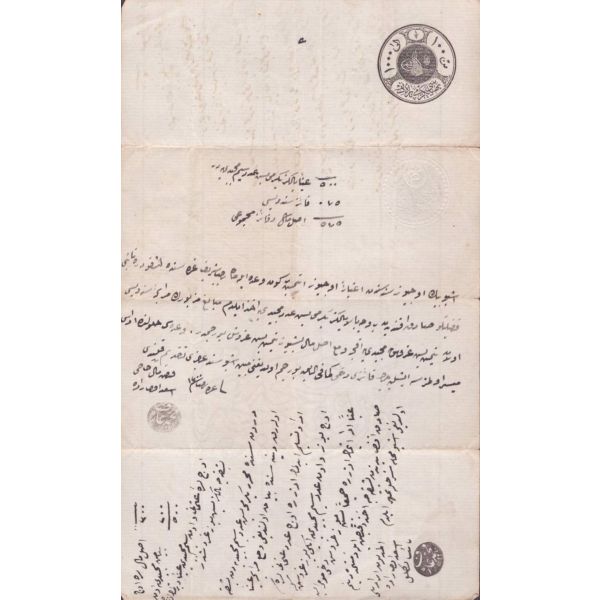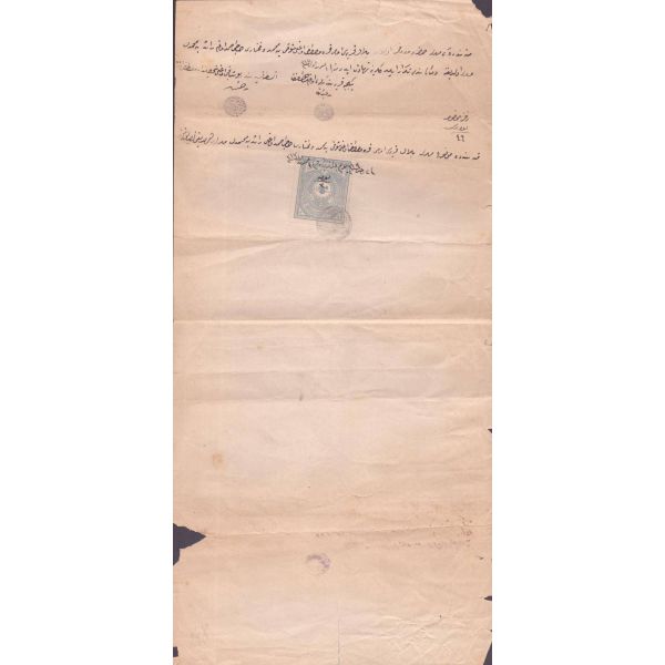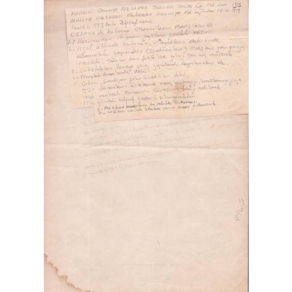 Arka yüzde yer alan notta, evrak 10 kuruşluk varakaya yazılması gerektiği halde 2 kuruşluk varakaya yazıldığı için yarım lira ceza ödendiği yazılıdır.
