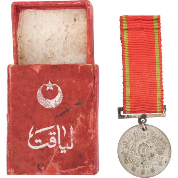 KUTULU OLARAK NADİR GÖRÜLÜR ⌀ 25 MM Liyakat Madalyası, 1890 yılından itibaren Osmanlı İmparatorluğu tarafından verilmeye başlanan sivil ve askerî madalyadır. Altın ve Gümüş olmak üzere iki sınıftan oluşmaktadır. Madalya, I. Dünya Savaşı´nın sonuna kadar, Osmanlı İmparatorluğu´nda verilmeye devam etti.