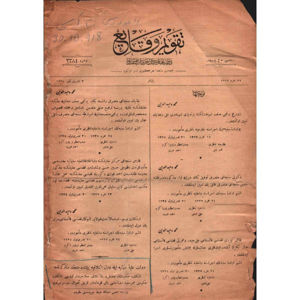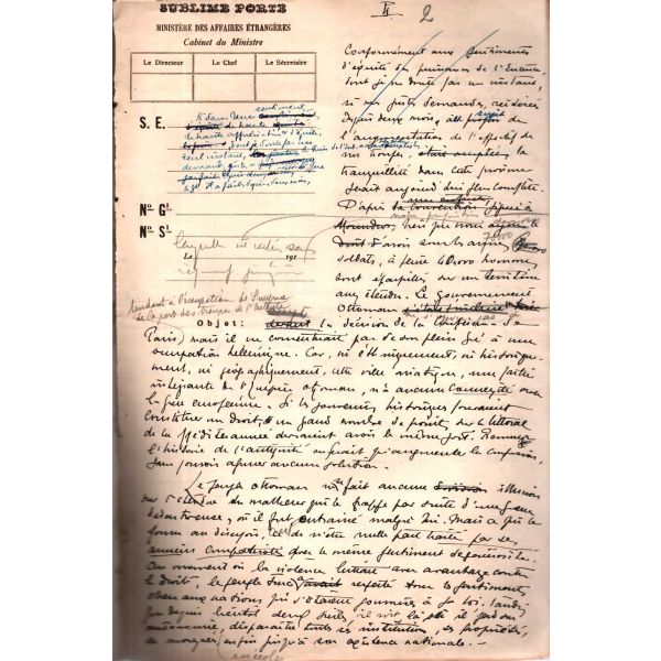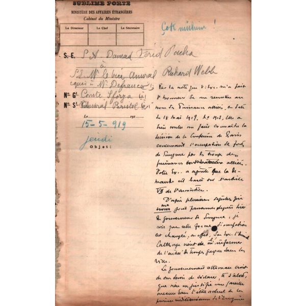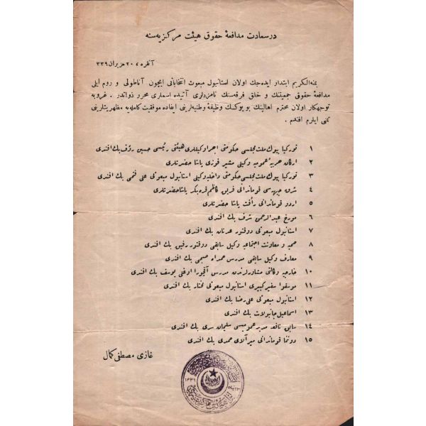Galip Kemali Söylemezoğlu´nun terekesinden çıkan Osmanlıca belgenin üst kısmında yer alan "Damad Ferid Paşa´nın hatt-ı destiyle" notunun Galip Kemali tarafından düşüldüğü tahmin edilmektedir.