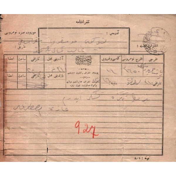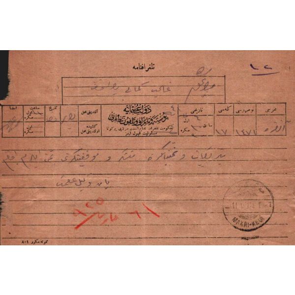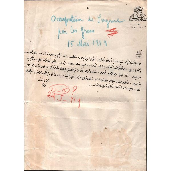"… İzmir´le muhabere munkatıdır. Oradan hiçbir malumat alınamıyor […] İşgalin tevessuu ihtimaline mebni takib edilecek hatt-ı hareketin ve […] nasıl bir vaziyet alınması iktiza etdiğinin emir buyurulması müstarhamdır."