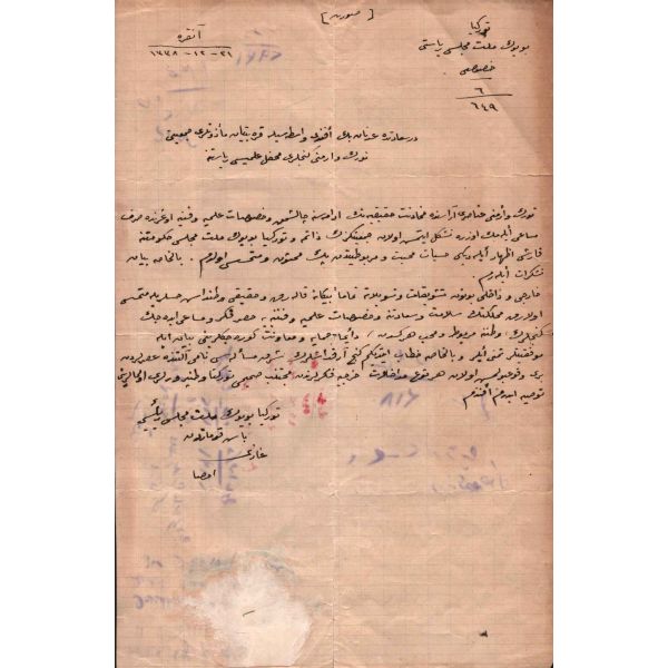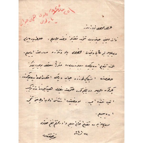 "Harici ve dahili bütün teşvikat ve tesvilata tamamen bigane kalarak ve hakiki vatandai hislerimle mütehassis olarak memleketin selamet ve saadetine ve hususat-ı ilmiye ve fenniyeye hasr-ı fikr ve mesai edecek gençlerin vatanına merbut ve muhib herkesden, daima himaye ve muavenet göreceklerini beyan ile muvaffakiyetler temenni eyler ..."