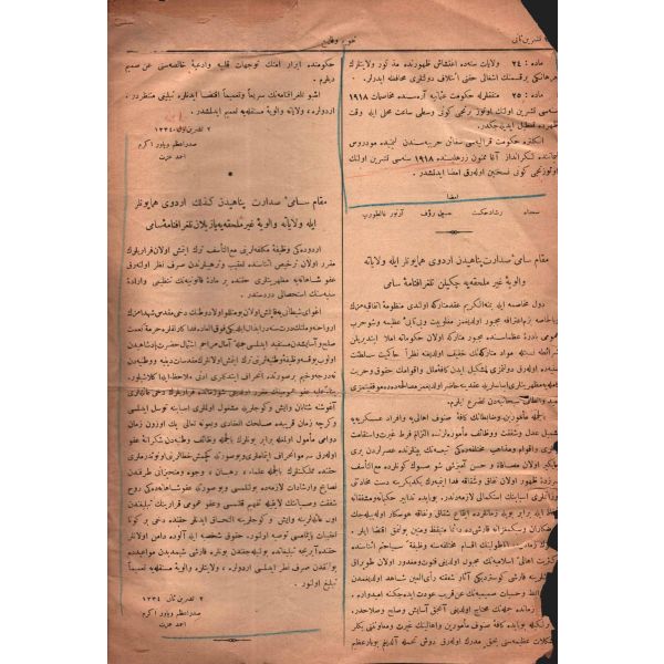 "… İzmir´in Yunan´a ilhakı ile başlayarak vücud-ı vatan dilim dilim parçalanıyor. Bunu idrak eden ve hiçbir vakitde ölümden korkmayan biz Osmanlılar bu dakikadan itibaren vatanın parçalanmasını görmekdense …"