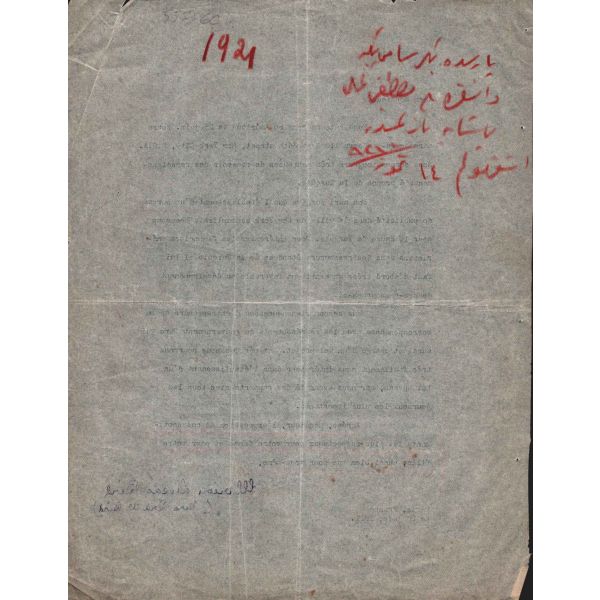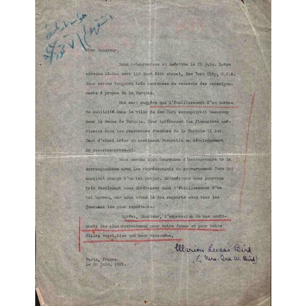 Galip Kemali Söylemezoğlu´nun terekesinden çıkan bu belgenin arka yüzünde yazılı "Paris´de Bekir Sami Bey´e ve Ankara´da Mustafa Kemal Paşa´ya yazılmışdır, 14 Temmuz 1921" notunun Galip Kemali tarafından düşüldüğü tahmin edilmektedir.