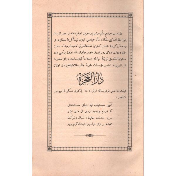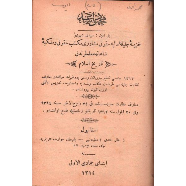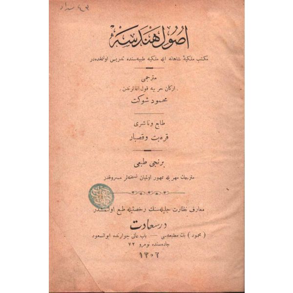 31 Mart Vakası´nın ardından İstanbul´a yürüyen Hareket Ordusunun başında İstanbul´a gelip kısa zaman içinde etkin bir rol oynayarak saltanat değişikliğinde etkili olan II. Meşrutiyet devri sadrazamı Mahmud Şevket Paşa, Mekteb-i Harbiye´de cebir ve hendese, fenn-i esliha, endaht [atış] nazariyeleri gibi dersler vermiş, çeşitli dergilerde yazılar ve tercümeler yayınlamıştır. Paşa´nın müzayedeye sunulan bu eserinin yanı sıra, Mekteb-i Harbiye´de okutulan Logaritma Cedâvili Risâlesi, Fenn-i Esliha gibi bazı derleme kitapları ve tüfeklerle ilgili risaleleri bulunmaktadır.