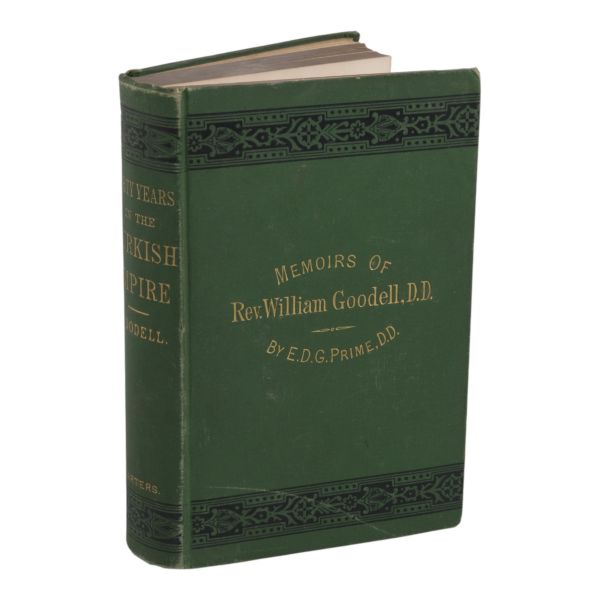 İstanbul Misyonu kurucusu William Goodell’in (1792-1867), damadı E. D. G. Prime tarafından hazırlanarak yayımlanan anıları. Arka kapak içinde 1 kitapçı etiketi mevcuttur. Bez cildinde. İstanbul’da yaşayan Ermeni cemaati arasında çalışmak üzere gönderilen ve İstanbul Misyonu’nu kuran Goodell, Rum ve Ermeni Cemaatleri arasında açılan okullara olan katkıları, İncil ve dini İstanbul’da yaşayan Ermeni cemaati arasında çalışmak üzere gönderilen ve İstanbul Misyonu’nu kuran Goodell, Rum ve Ermeni Cemaatleri arasında açılan okullara olan katkıları, İncil ve dini eserleri Ermeni alfabesiyle yazılmış Türkçe’ye çevirmesi, günlük dinî vaazler vermesi, Board’un geliştirdiği politikaların bölgeye yayılmasında üstlenmiş olduğu rolü ve “Amerikan kimliği”ni kendi yaşam tarzı ile çevresine tanıtması gibi birçok sebepten dolayı misyonerlik tarihinde önemli bir yere sahip bulunmaktadır.