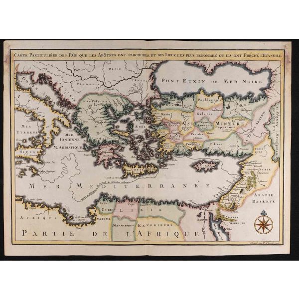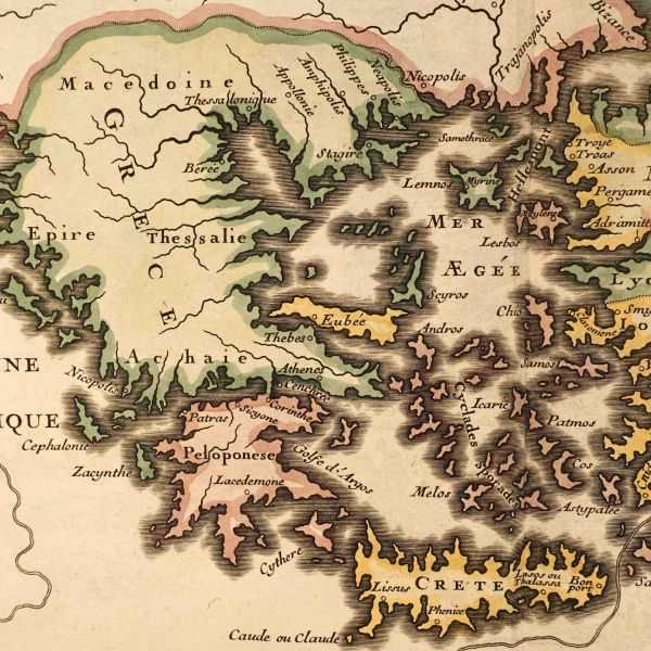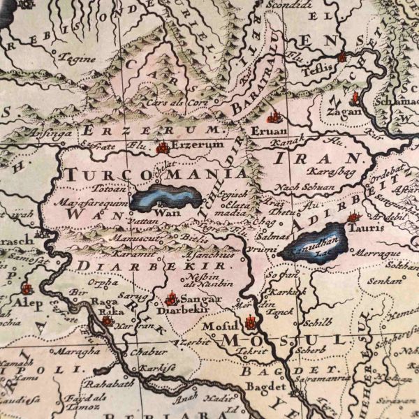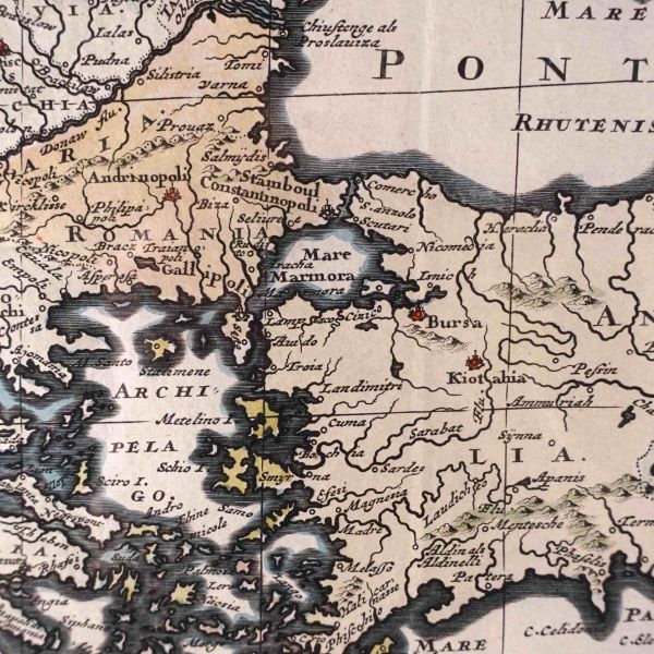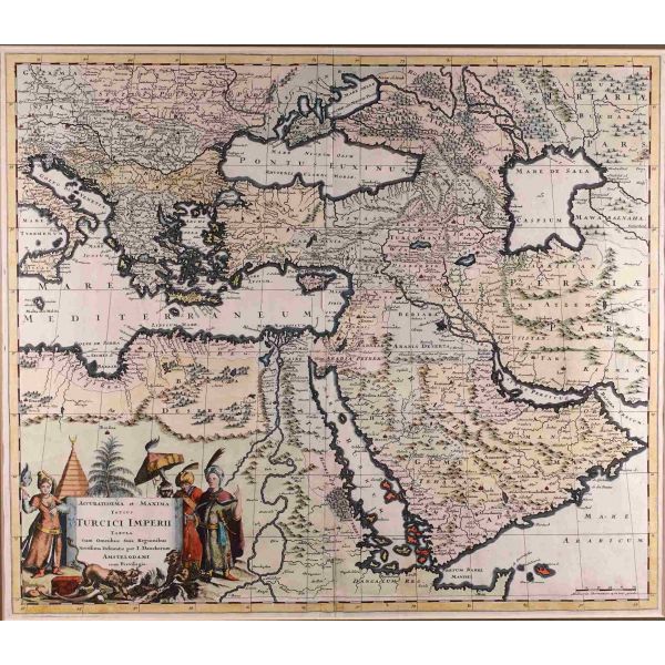 Hollanda´nın önde gelen coğrafi harita yayıncısı ailelerinden biri olan Danckerts ailesine mensup olan Justus Danckerts (1635-1701) tarafından yayımlanan harita, Mısır, Yunanistan ve Arap yarımadası dahil olmak üzere dönemin Osmanlı İmparatorluğu topraklarını ayrıntılı bir şekilde göstermektedir. Sol alt köşede yer alan harita künyesinin etrafı kostümlü Osmanlı tipler, aslanlar ve çadır gibi egzotik görsellerle süslenmiştir.