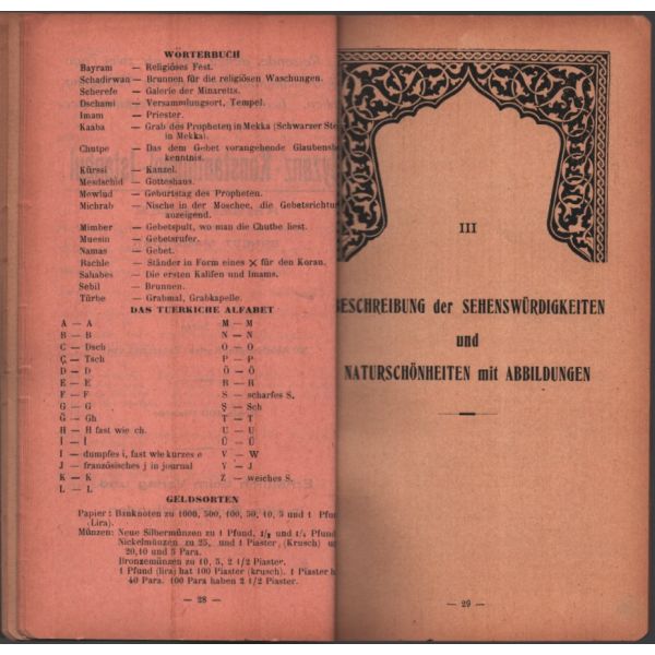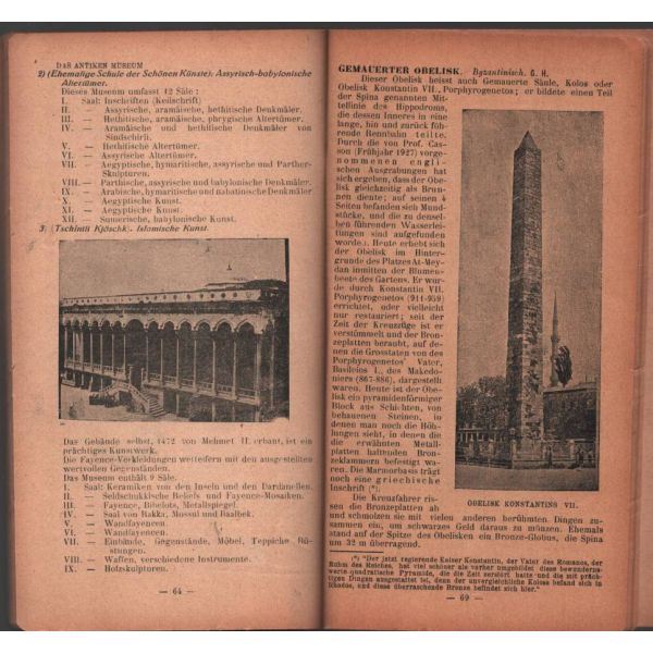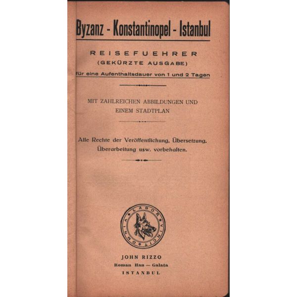 Ön kapağında Pera Palas Otel´in reklamı bulunan Almanca rehber, tarihî yarımada içerisinde bulunan Bizans ve Osmanlı dönemi yapılarına dair kapsamlı bilgiler içermektedir.