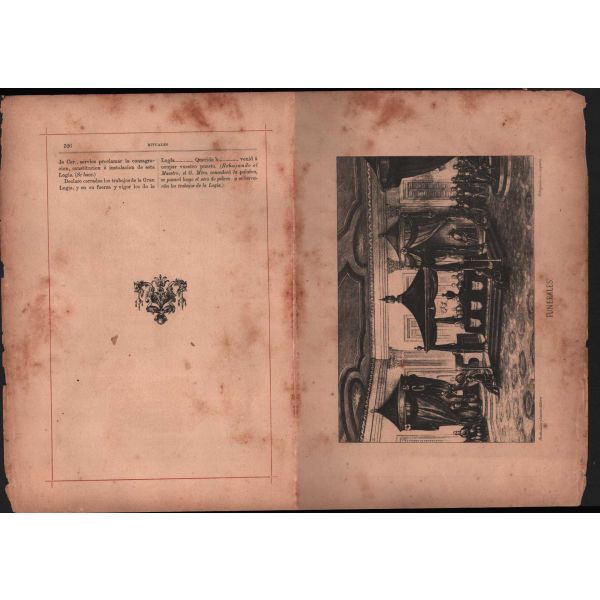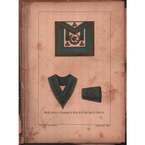 İçerisinde yer alan 19 adet enfes taş baskı ve renkli/renksiz gravürlerle dünya Masonluğuna ve Masonluk tarihine ışık tutan eser, kapsamlı bir çalışmanın ürünüdür. Masonluğun başlangıcından Orta Çağ Avrupa´sındaki faaliyetlerine, yaşadığı çağın Mason localarından Masonik ritüellere ve kostümlere değin birçok hususu detaylıca kaleme alan Almedia´nın yalnızca belli başlı kütüphanelerde ve sayılı koleksiyonda bulunan bu çok nadir eseri, yazıldığı tarihten bu yana özgünlüğünü ve prestijini korumuş, araştırmacılar için mühim bir referans kaynağı olmuştur. *Kitap hayli yıpranmış vaziyette olup, metin kısmı sırttan ve birbirinden ayrılmıştır.