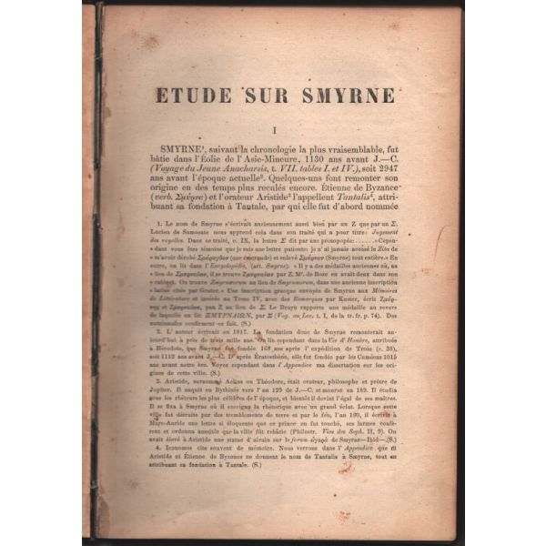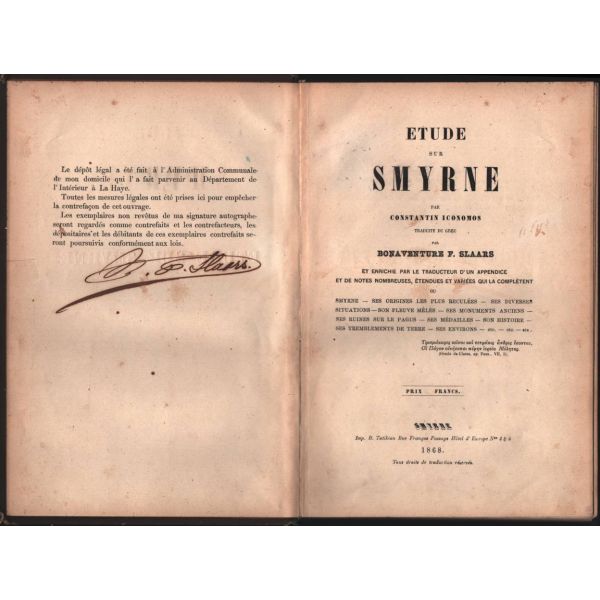 İlk kez 1817 yılında Constantin Iconomos tarafından Yunanca kaleme alınan "İzmir Üzerine İnceleme" kitabı, 1868 yılında Bonaventure F. Slaars tarafından aslına sadık kalınıp, birtakım eklerle zenginleştirilerek Fransızcaya çevrilmiştir. Bu çeviri, İzmir hakkında kaleme alınmış ilk Fransızca eser olmuştur. İzmir gibi kadim bir şehrin tarihini yazacak bir tarihçi çıkmamasından hayıflanan Slaars´ın bu kültür hizmeti, İzmir tarihi için oldukça önemli bir yer tutmaktadır.