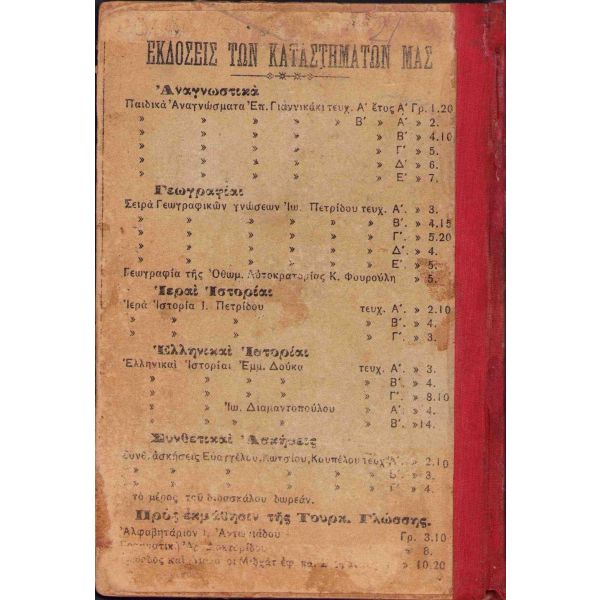 Yirminci yüzyılın ilk yıllarında İzmir'de basılmış kıraat kitabı, Rumca öğretmeye yönelik hazırlanmıştır. İçerisinde talebeler için okuma metinleri yer almaktadır.
