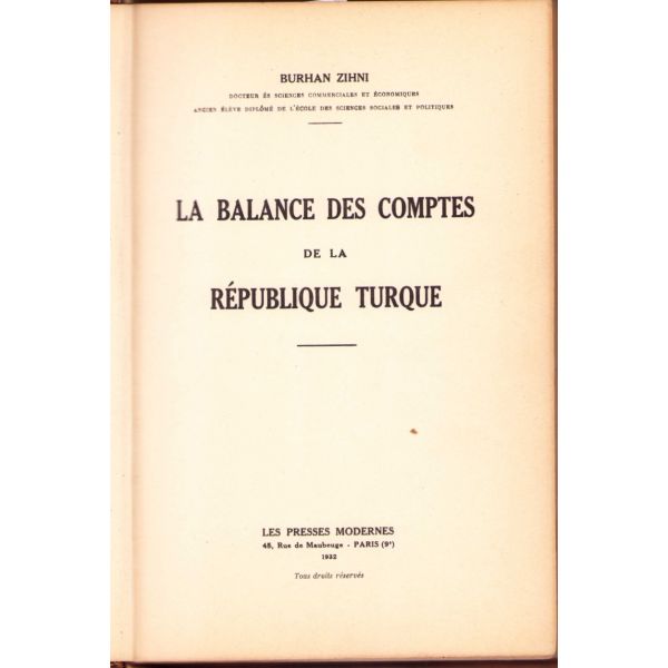 Eser, Sümerbank Genel Müdürü Burhan Zihni Bey tarafından kaleme alınmıştır. Burhan Zihni Bey'in Türkçe üç ciltlik 'Para Ekonomisi' isimli bir eseri de vardır. *Eserin sırtının alt kısmı haliyledir. İçerisinde bazı sayfa kenarlarına not alınmış vaziyettedir.