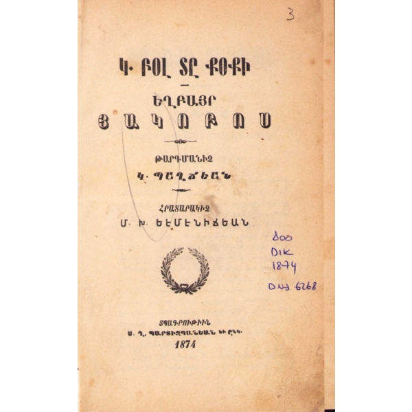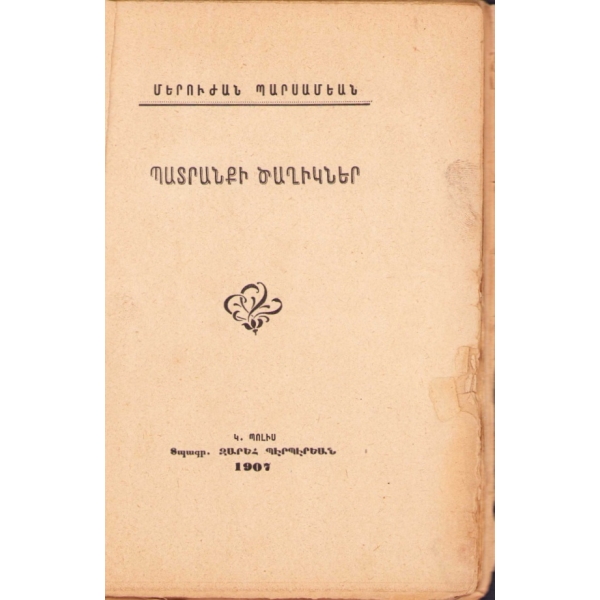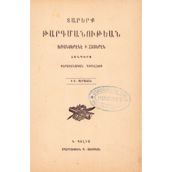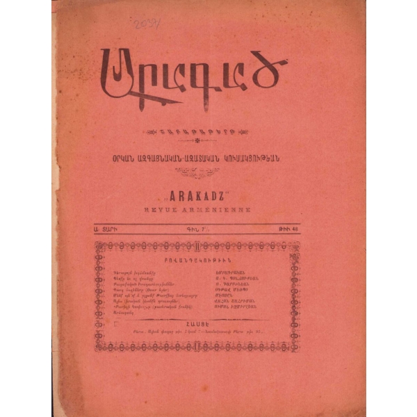 Baskı yeri Ermenice yazılmıştır.