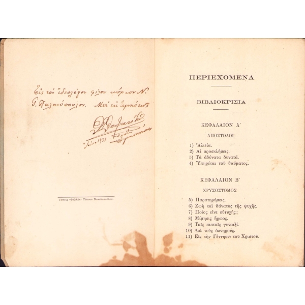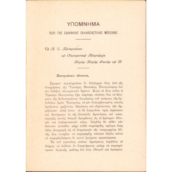 Muhtıra II. Fotios'un Patrikhane'nin başına geçmesinin birinci yıldönümüne atfen olarak 7 ekim 1930 tarihinde yayınlanmıştır.