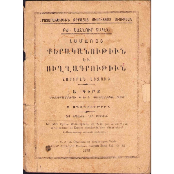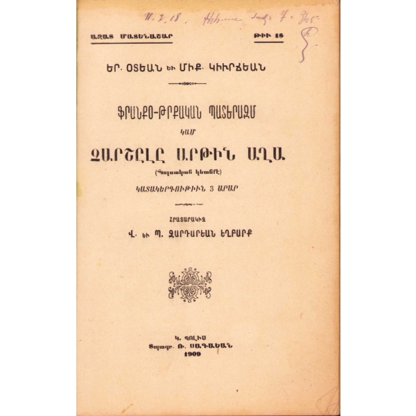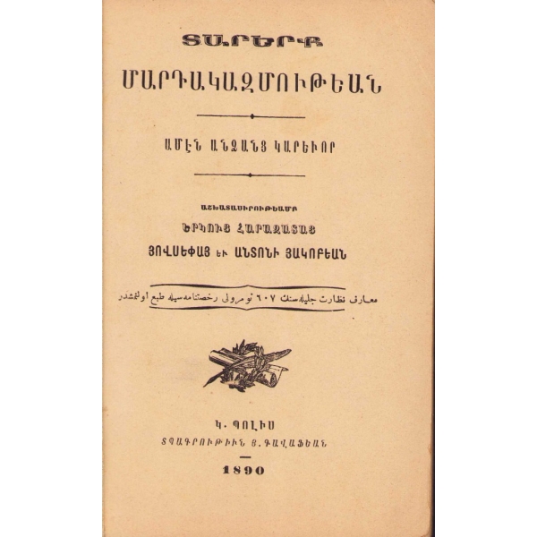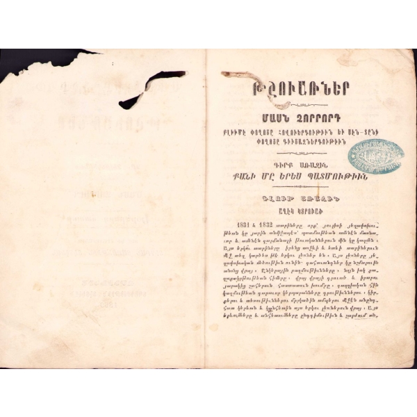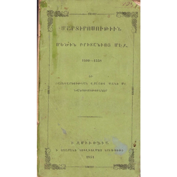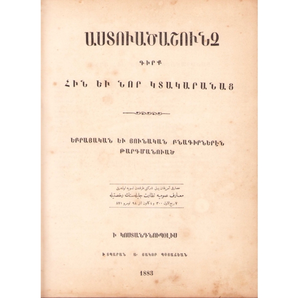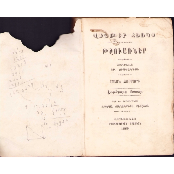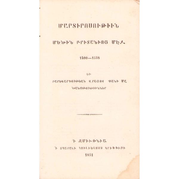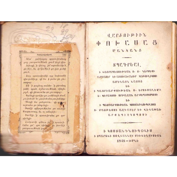 Baskı yeri Ermenice yazılmıştır. 50-80 arasındaki bazı sayfalar eksiktir.