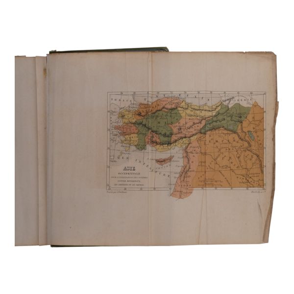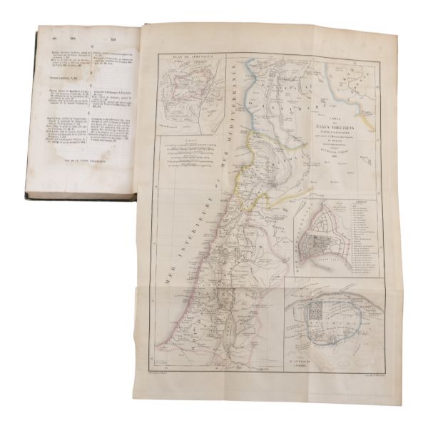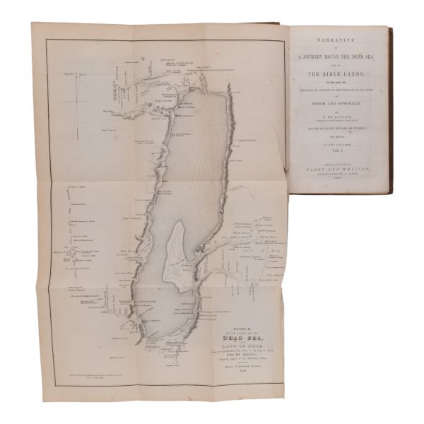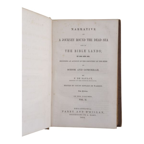 Fransız arkeolog ve gezgin Louis Felicien de Saulcy’nin, 1850–1851 yıllarında yaptığı ve İncil’de geçen yerlerin fiziksel tespitine odaklandığı seyahati... Sırtı altın yaldız başlıklı, kapakları motif desenli bez dönem ciltlerinde.