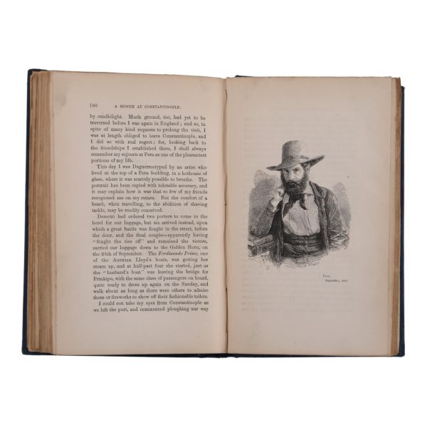 1849 yılında İstanbul´a gelerek burada bir ay kalan İngiltere´nin popüler mizahçılarından Albert Richard Smith´in, yalın ve mizahi bir dille kaleme aldığı ve bizzat kendi çizdiği resimlerle zenginleştirdiği İstanbul izlenimleri... Kitap içinde başlık sayfasında yer alan renkli gravürün yanı sıra çok sayıda metin içi siyah-beyaz görsel yer almaktadır. Sırtı altın yaldız dekor ve başlıklı, ön kapağı altın yaldız tuğra motifli dekoratif dönem cildinde. Ön iç kapağında ex libris yer almaktadır.