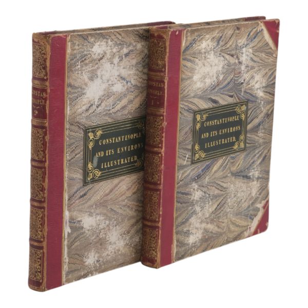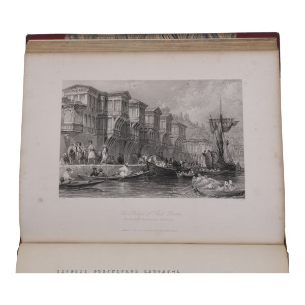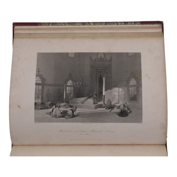 Sultan II. Mahmud döneminde Britanya Büyükelçiliği´nin rahibi olarak 1821-24 ve 1831-32 yılları arasında İstanbul´da yaşayan Robert Walsh´ın (1772-1852), sonraki yıllarda bu şehirden dostlarına yazdığı mektupları derleyerek meydana getirdiği ünlü eseri... Yeniçeri Ocağı´nın kaldırılışı, Yunan İsyanı, büyük İstanbul Yangını gibi çalkantılı olayların yaşandığı II. Mahmud döneminde İstanbul´da yaşayan ve tüm bu olaylara tanık olan Walsh´ın birinci elden gözlemlerini aktardığı esere, Thomas Allom´un büyüleyici gravürleri (96 adet, eksiksiz) eşlik ediyor... Sırtları panelli, altın yaldız dekor ve başlıklı; ön kapakları altın yaldız başlıklı, iç ve dış kapakları ve sayfa kenarları ebru desenli ciltlerinde.