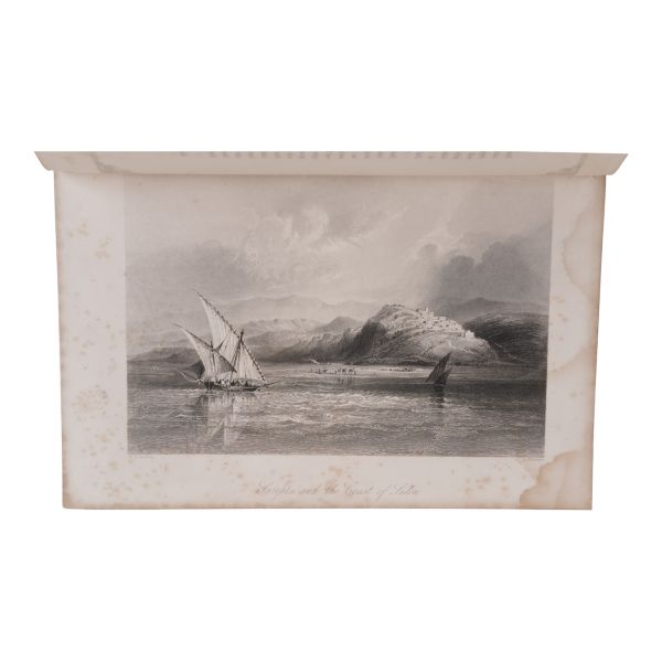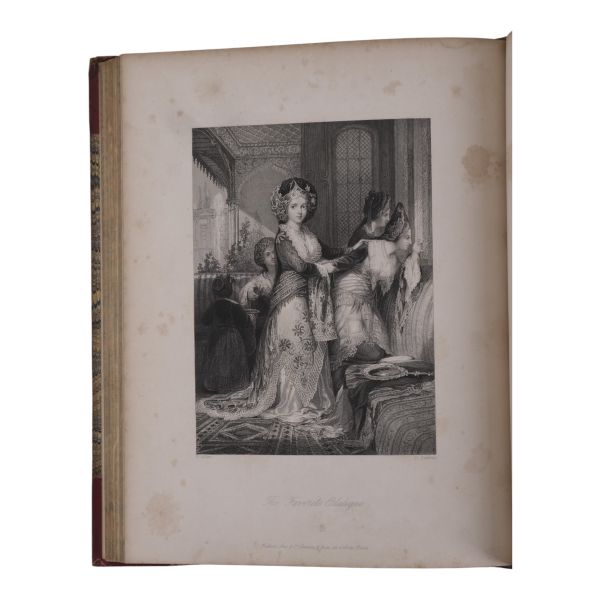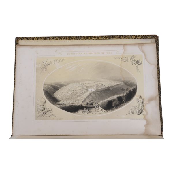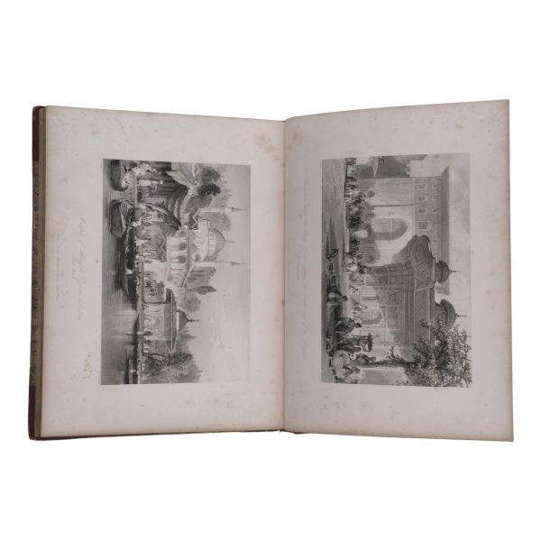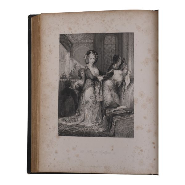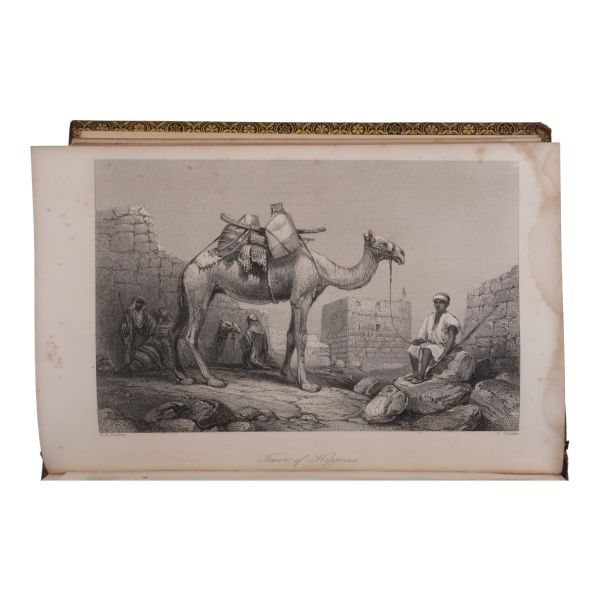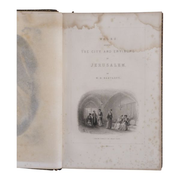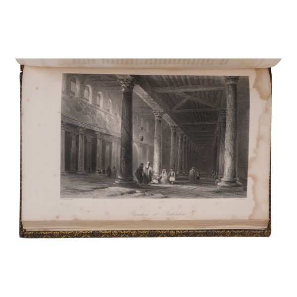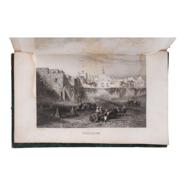 Ustalıkla çizdiği ince detaylı gravürleriyle seyahat ettiği yerlerin pitoresk güzelliklerini ölümsüzleştiren meşhur İngiliz topografya çizeri William Henry Bartlett´in, kendi çizimlerinin çelik baskı gravürlerinin yanı sıra metin içi zengin illüstrasyonlarla süslediği ve kendi imzasıyla yayınlanan ilk kitabı olan Kudüs seyahatnamesi... Sırtı panelli, altın yaldız dekor ve başlıklı, kapakları altın yaldız dekorlu dekoratif dönem cildinde. Sayfa kenarları altın yaldızlıdır. *Ön kapağın yarısından fazlası ciltten ayrılmıştır.