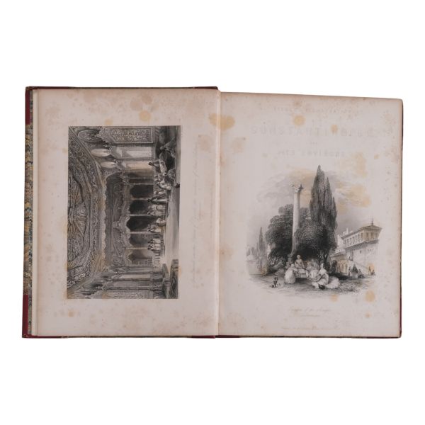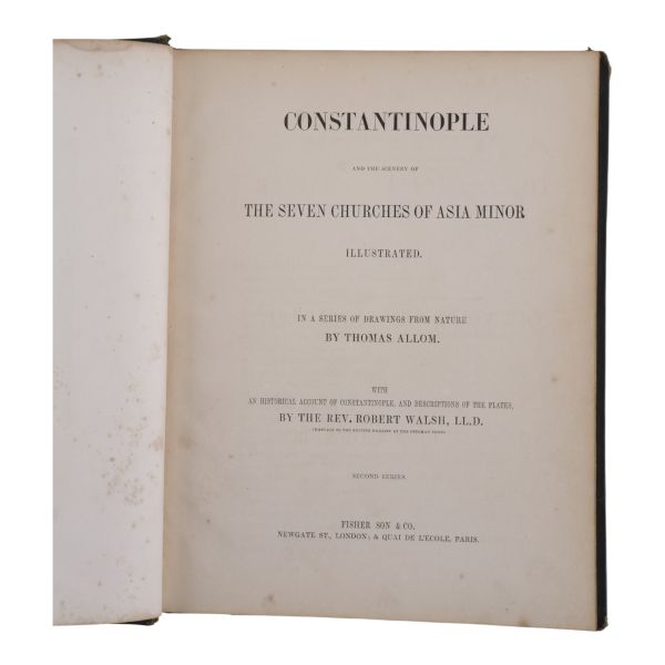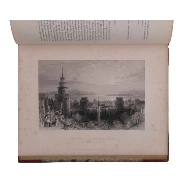 Sultan II. Mahmud döneminde Britanya Büyükelçiliği´nin rahibi olarak 1821-24 ve 1831-32 yılları arasında İstanbul´da yaşayan Robert Walsh´ın (1772-1852), sonraki yıllarda bu şehirden dostlarına yazdığı mektupları derleyerek meydana getirdiği ünlü eseri... Yeniçeri Ocağı´nın kaldırılışı, Yunan İsyanı, büyük İstanbul Yangını gibi çalkantılı olayların yaşandığı II. Mahmud döneminde İstanbul´da yaşayan ve tüm bu olaylara tanık olan Walsh´ın birinci elden gözlemlerini aktardığı esere, Thomas Allom´un büyüleyici gravürleri eşlik ediyor... Sırtları panelli, altın yaldız dekor ve başlıklı deri ciltlerinde. Sayfa kenarları altın yaldızlıdır. İkinci cildin ön iç kapağında ex libris yer almaktadır.