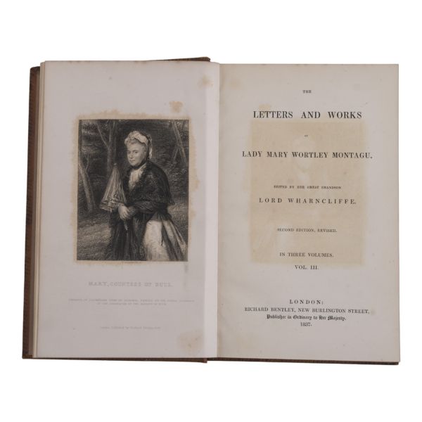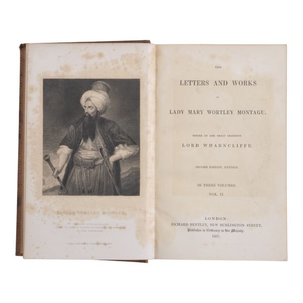 Lady Montagu´nün yakın akrabası Lord Wharncliffe tarafından hazırlanan kitapta, Montagu´nün özellikle 1716–1718 yıllarında Osmanlı İmparatorluğu’nda bulunduğu dönemde yazdığı Türkiye Mektupları önemli yer tutmaktadır. Sırtları panelli, altın yaldız dekor ve başlıklı dönem ciltlerinde. Tüm ciltlerin ön iç kapağında ex libris yer almaktadır.