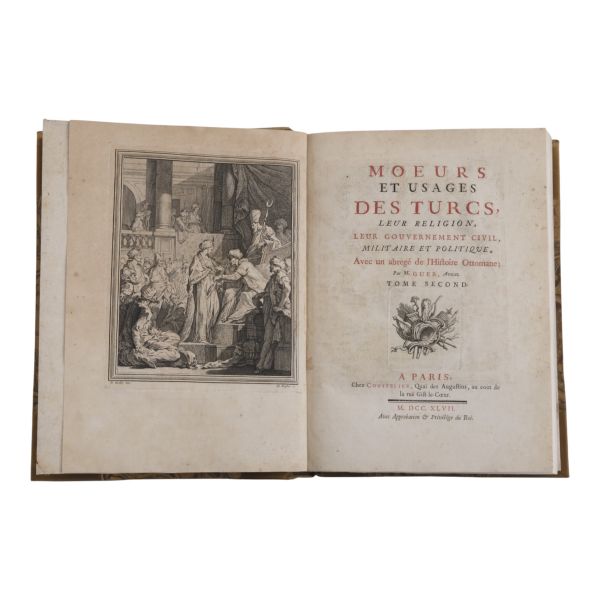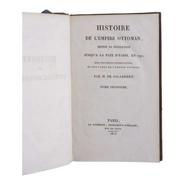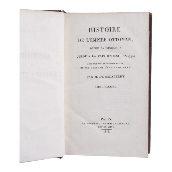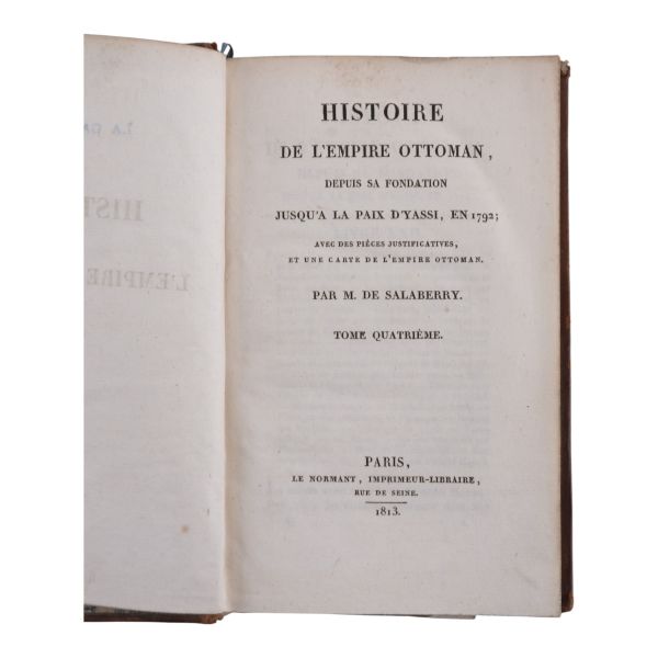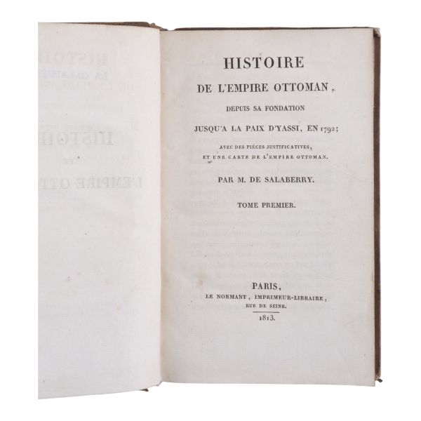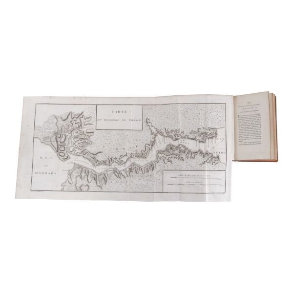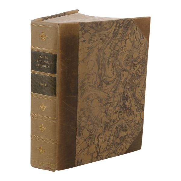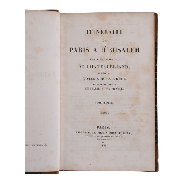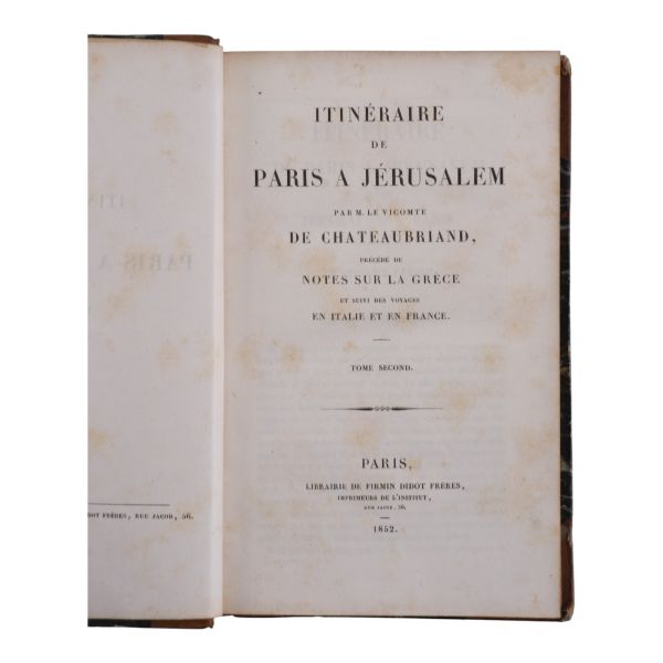 Fransız edebiyatında Romantizm´in kurucusu kabul edilen ve kendisinden sonra gelen Victor Hugo, Lamartine, Andre Malraux gibi isimlere örnek olan yazar ve diplomat François-Rene de Chateaubriand´ın, Paris´ten Kudüs´e uzanan seyahatnamesi... Yolculuk sırasında İstanbul´a da uğrayan yazar, şehre dair ayrıntılı betimlemelerde bulunmuştur. Deri sırtları panelli ve altın yaldız başlıklı, iç ve dış kapakları ebru desenli dönem ciltlerinde.