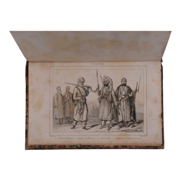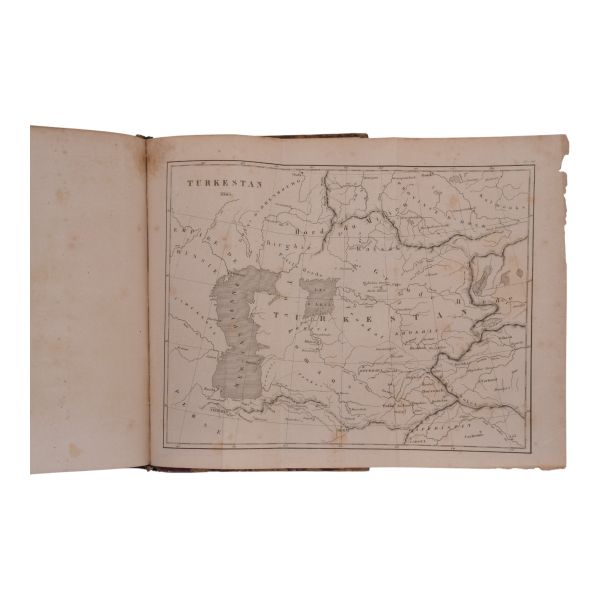 Orta Asya ve Güneydoğu Asya´ya dair etnografya kitabı. İkinci bölümü Çin´de bulunan bir diplomat yazmıştır. 19 adet levha ve 2 katlanır harita ile birlikte... Son sayfalarında gravürler ve katlanır haritalar yer almaktadır. Sırtı altın yaldız dekor ve başlıklı, kapakları ebru desenli deri dönem cildinde. *Metin bölümü ciltten ayrılmıştır.