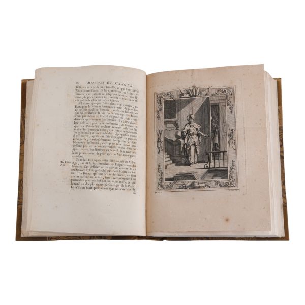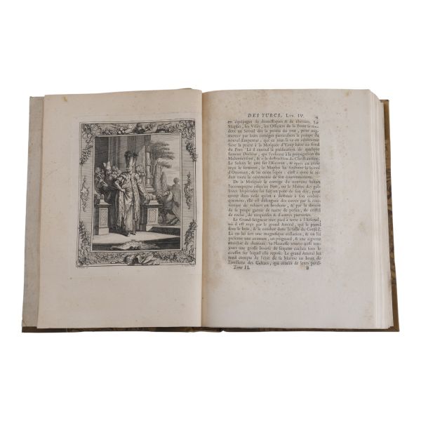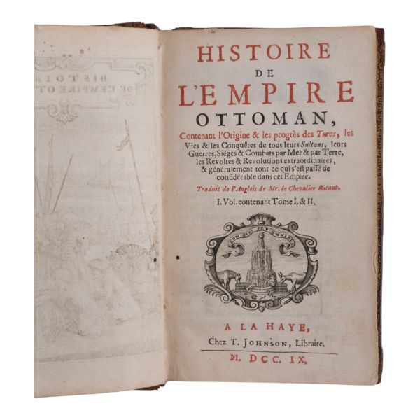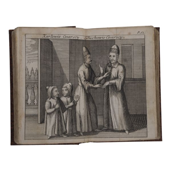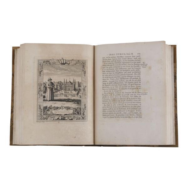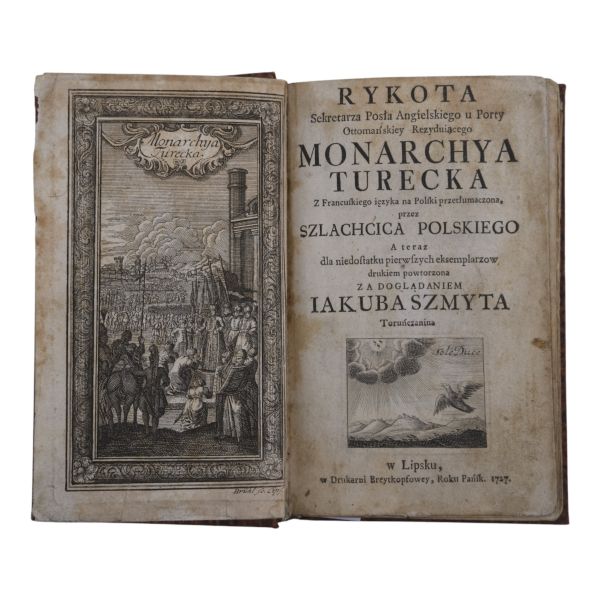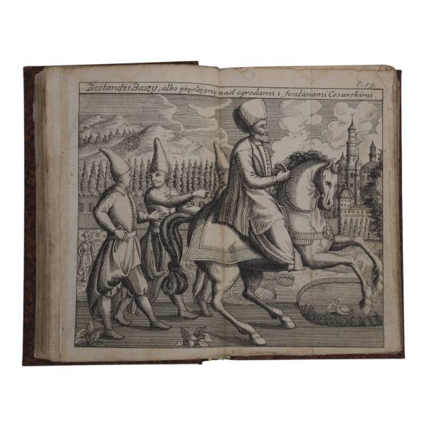Uzun yıllar Türkiye´de görev yapan İngiliz diplomat ve tarihçi Sör Paul Rycaut´un, Johann Benjamin Brühl´ün zengin gravürleri eşliğinde Sultan Osman´dan IV. Mehmed´e kadarki Osmanlı İmparatorlarını tanıttığı çalışmasının 1727 tarihli Lehçe baskısı. Tamamı ebru desenli cildinde.