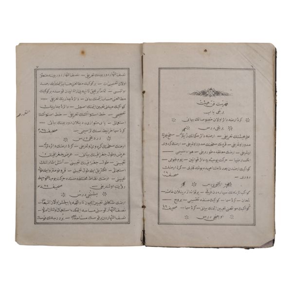 Deri sırtları panelli, altın yaldız dekor ve başlıklı dönem ciltlerinde. İç kapakları ebru desenlidir.